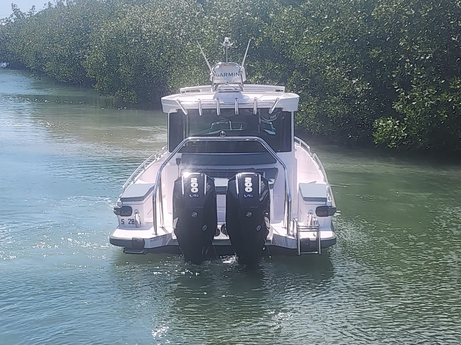 Power and performance are at the heart of the 2023 Axopar 28 Cabin. Equipped with twin engines delivering a combined 400 horsepower, this center console boat is built for exhilarating speed and responsive handling. The dual-engine setup not only provides impressive acceleration but also enhances maneuverability and safety, giving you peace of mind whether you’re cruising at high speeds or navigating tight marinas.The Axopar 28 Cabin’s hull design is engineered for efficiency and stability, allowing you to cut through waves with ease and enjoy a smooth, dry ride even in challenging conditions. The power and agility of this boat make it a joy to drive, whether you’re heading out for a day of fishing, water sports, or simply cruising with friends and family.