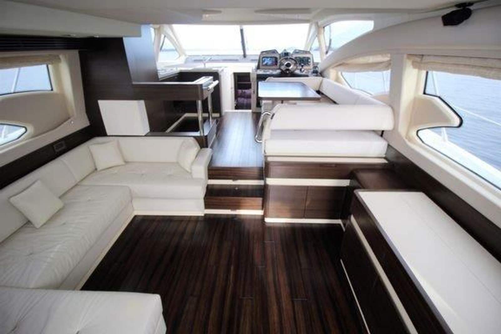 • Wooden flooring in salon, dinette, and helm