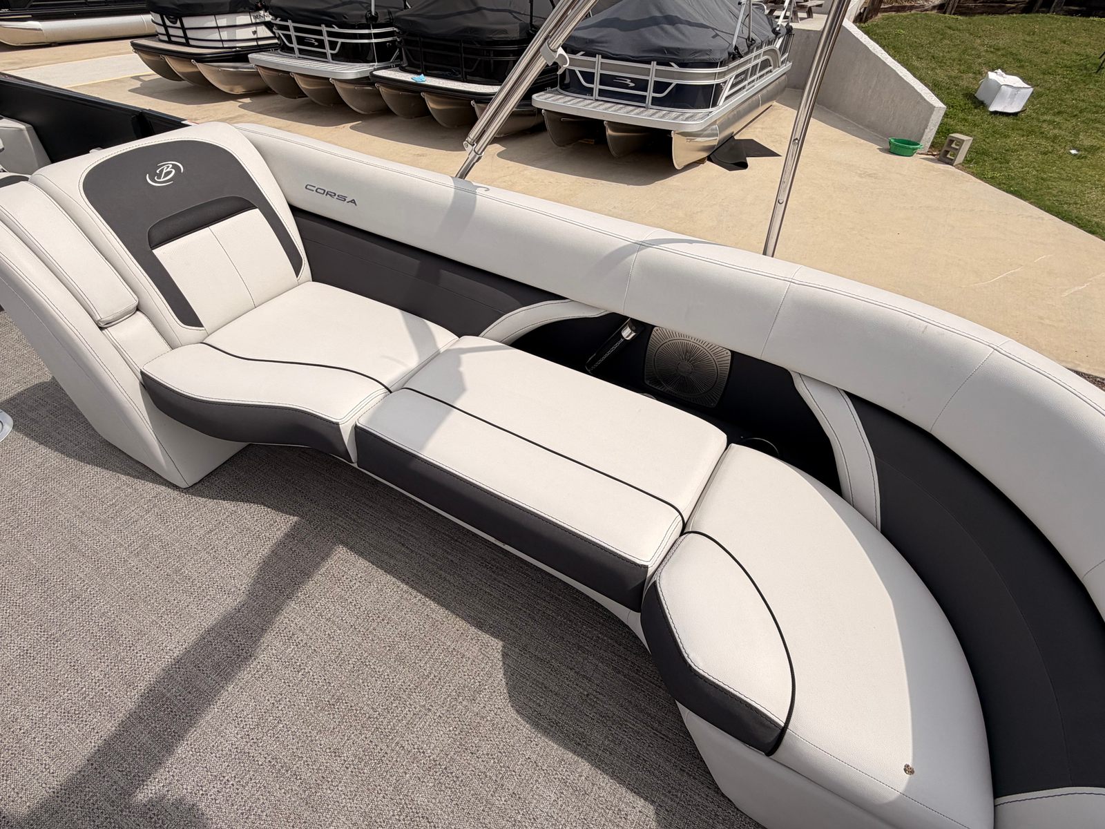 Powering this Barletta Corsa 25UCA is a robust 400-horsepower engine, ensuring thrilling performance and smooth handling. With only 12 engine hours, this pontoon boat is barely broken in, promising years of reliable adventures ahead. The single-engine setup provides a perfect balance of power and efficiency, making it easy to cruise, tow water toys, or reach your favorite destinations quickly. Whether you are gliding across calm lakes or navigating lively waterways, the responsive handling and impressive acceleration of this Barletta boat for sale will keep you and your guests smiling from start to finish.