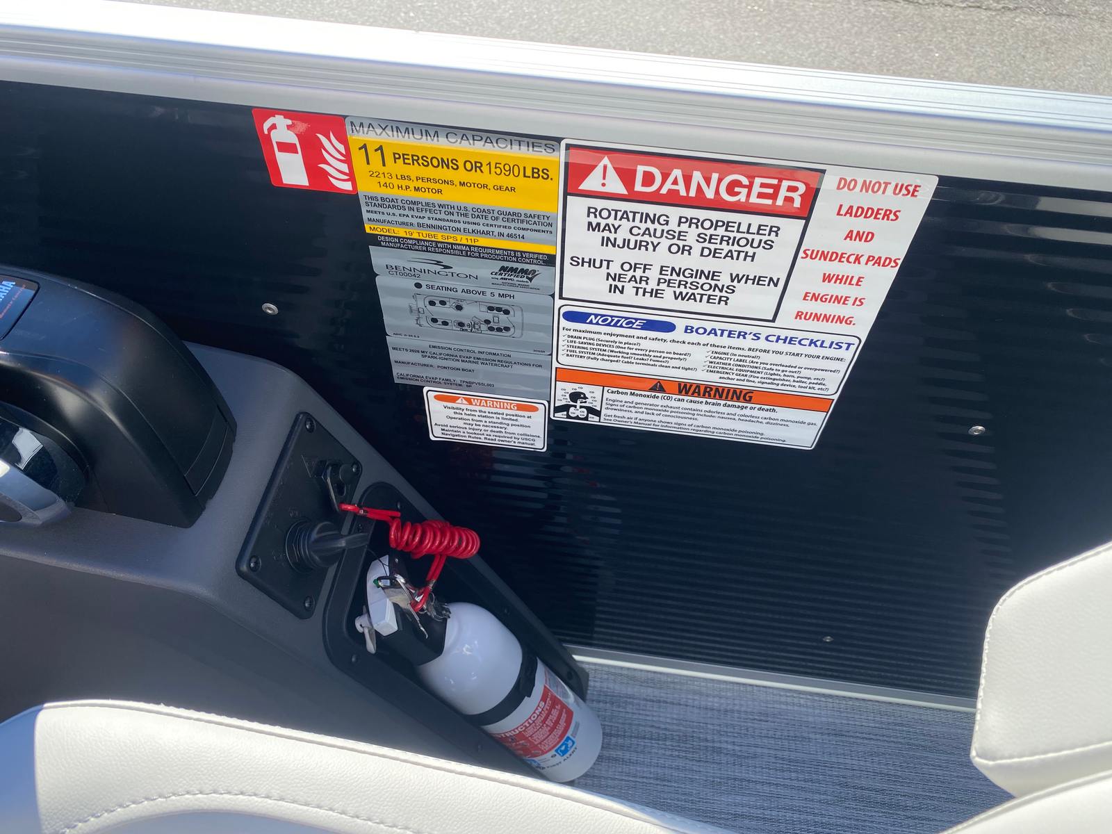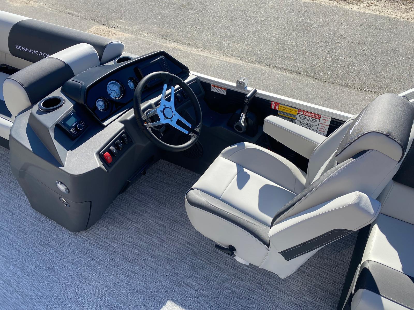 This Bennington boat for sale is loaded with premium features that enhance both comfort and convenience. The Panel - Gemini Black exterior gives the pontoon a sophisticated and modern look, while the No Accent - Textured finish and Leon Light Silver details add a touch of elegance. Inside, the Interior Accent - Slate Simtex upholstery provides a plush and inviting atmosphere, perfect for relaxing or entertaining guests.The Ironwood Dash Accent adds a refined touch to the helm, complementing the boat’s overall aesthetic. The Canvas - Midnight Black offers protection from the elements, ensuring you and your guests stay comfortable regardless of the weather. For added convenience, a wireless charger is included, keeping your devices powered up while you enjoy your time on the water. The Ski Tow Bar - SPS is a standout feature for watersports enthusiasts, making it easy to tow skiers or wakeboarders for hours of fun.