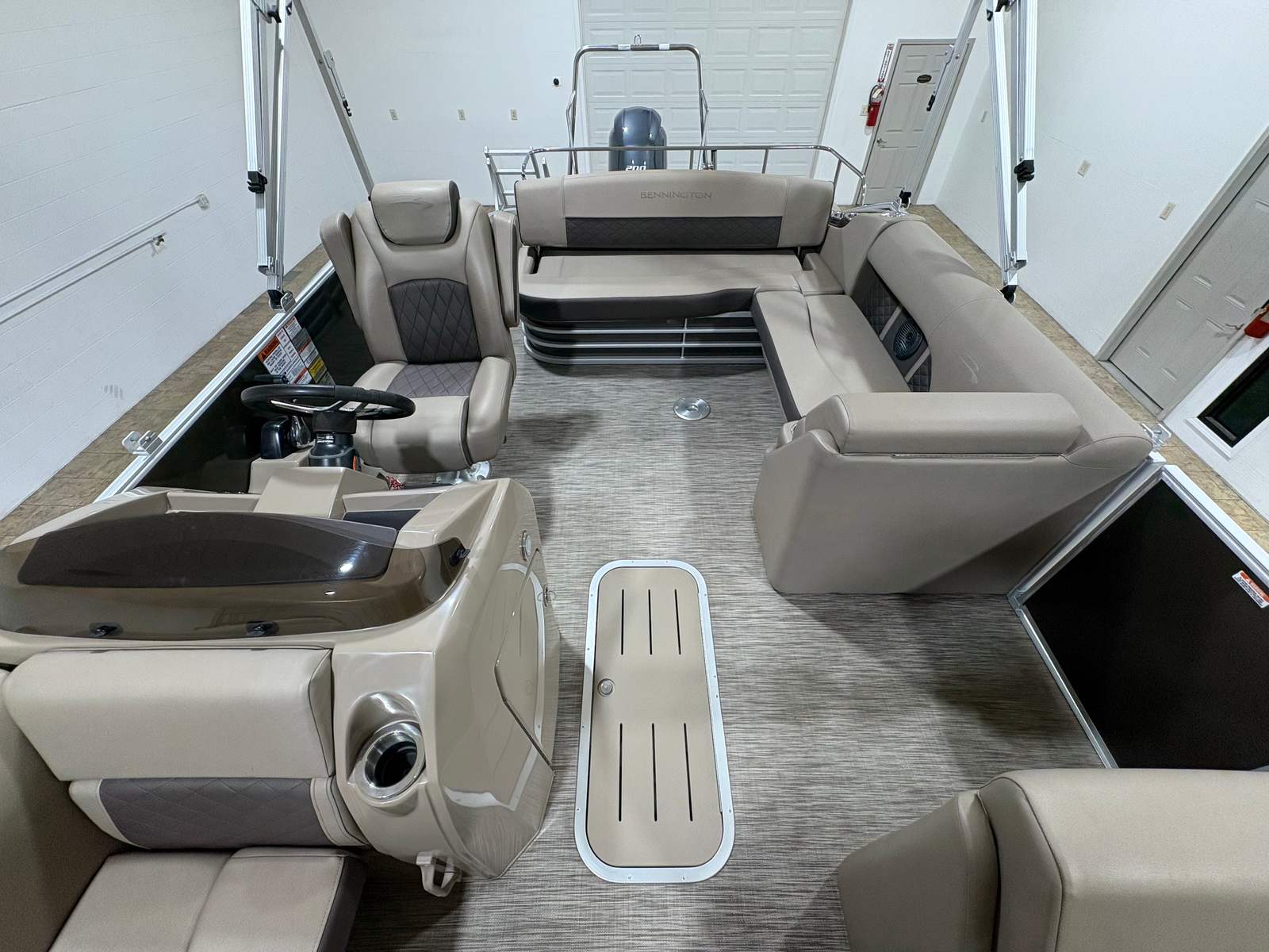 Powering this Bennington 22 LSB is a robust single engine delivering 200 horsepower, ensuring a smooth and exhilarating ride every time you hit the water. With 397 engine hours, this pontoon boat has been well-maintained and is ready to provide many more seasons of enjoyment. The 200 HP engine offers the perfect balance of power and efficiency, allowing you to glide effortlessly across the water, tow water toys, or reach your favorite fishing spots with ease. Whether you are cruising at a leisurely pace or seeking a bit of excitement, the performance capabilities of this Bennington boat for sale will not disappoint.