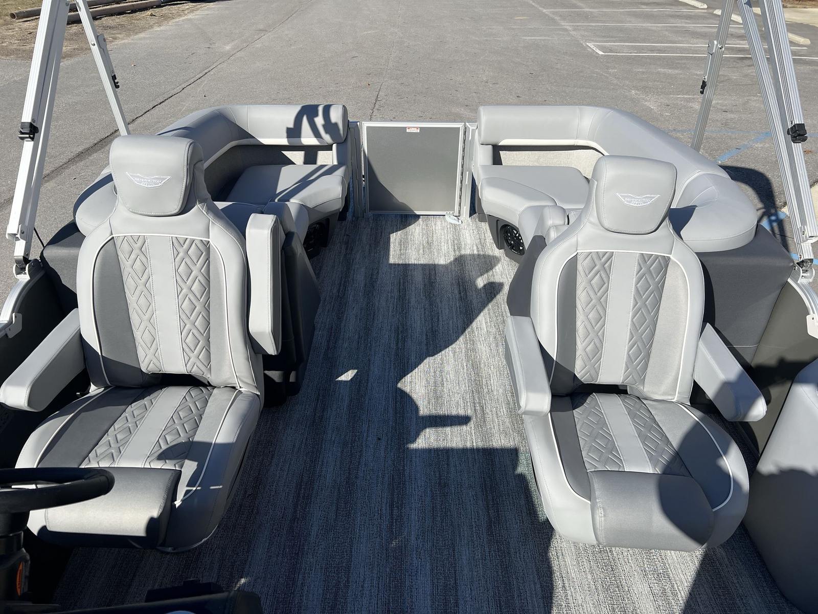 The Bennington 22 MFB SPS is packed with innovative features that set it apart from other pontoon boats for sale. The 12 Button Digital Switching system puts control at your fingertips, allowing you to manage onboard systems with ease. The 7" Vivid UX Touchscreen Display provides intuitive access to navigation, entertainment, and boat information, ensuring you stay connected and informed throughout your journey. The Master Power switch offers added convenience and safety, while the horn ensures you’re always prepared for any situation.For modern connectivity, the USBP Panel with Wireless Charging Dock keeps your devices powered up and ready to go, so you can capture every moment and stay in touch with loved ones. The interior and exterior design features a sophisticated combination of Panel – Smooth Silver, Accent – Smooth Metallic White, Canvas – Metallic Silver, and Shadow Gray Veneto, all complemented by striking Chrome Logos. These premium finishes create a contemporary, upscale atmosphere that’s sure to impress.