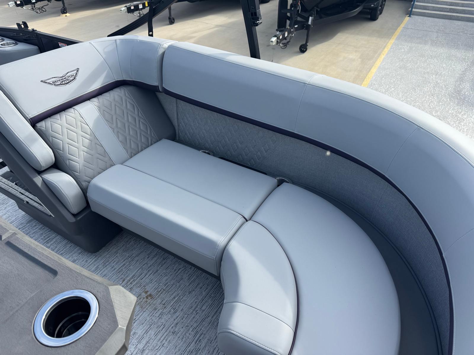 The 2026 Bennington 22 MSB SPS is loaded with premium features that elevate your time on the water. The dual battery switch with fuse ensures reliable power management, so you can enjoy your day without interruption. The RGB Control M Series lighting system, along with toekick lights, creates a vibrant and customizable atmosphere for evening cruises or dockside gatherings. Six Rockford Fosgate M1 lighted speakers deliver immersive sound quality, transforming your pontoon into a floating entertainment hub. Illuminated cupholders add a touch of elegance and convenience, while the elevated console with pocket Mythos provides a commanding view and easy access to controls. The base furniture M Series offers plush seating and ample space for relaxation, making every journey comfortable and enjoyable.