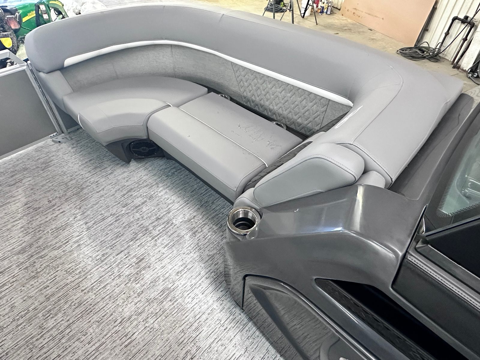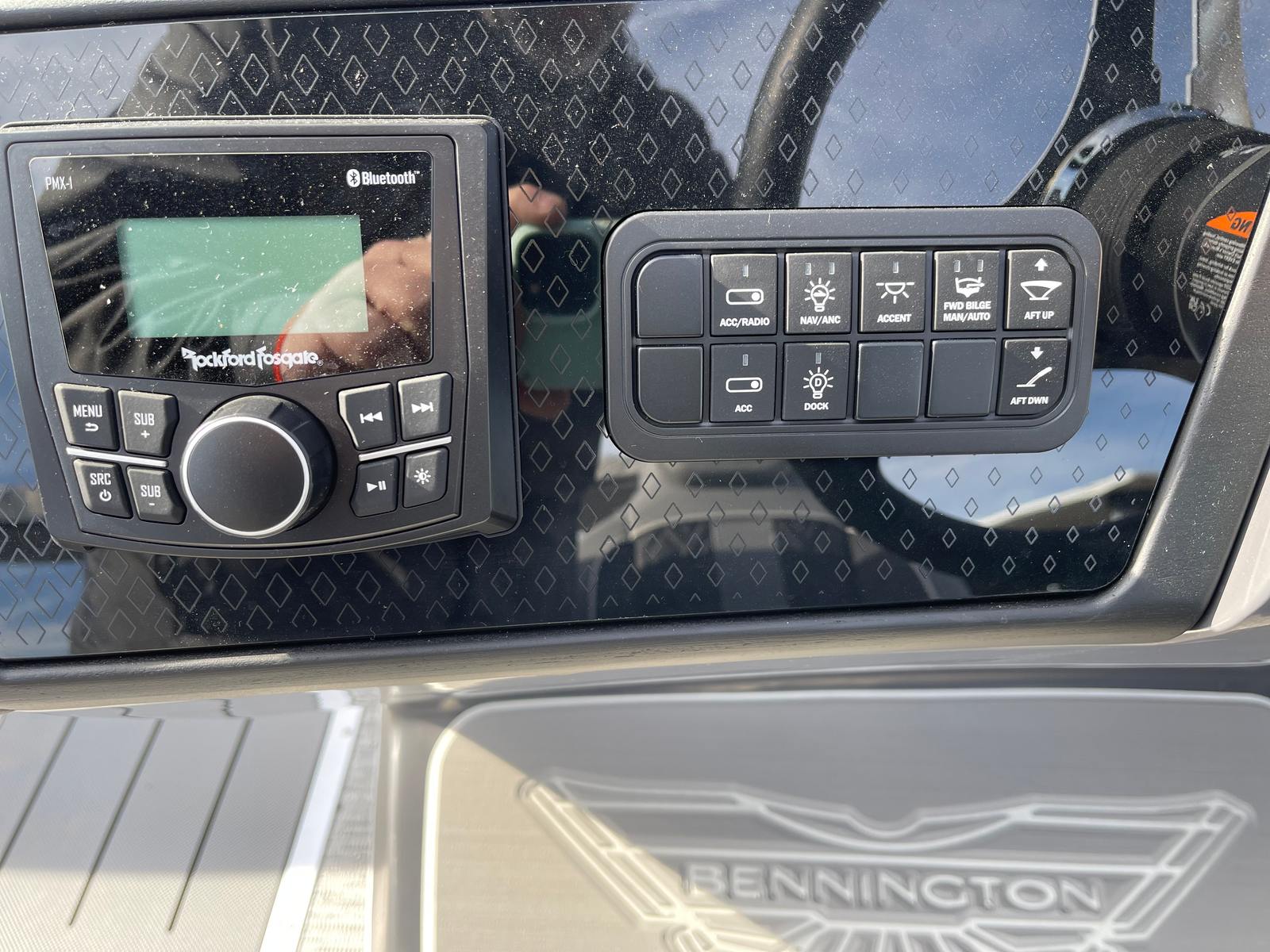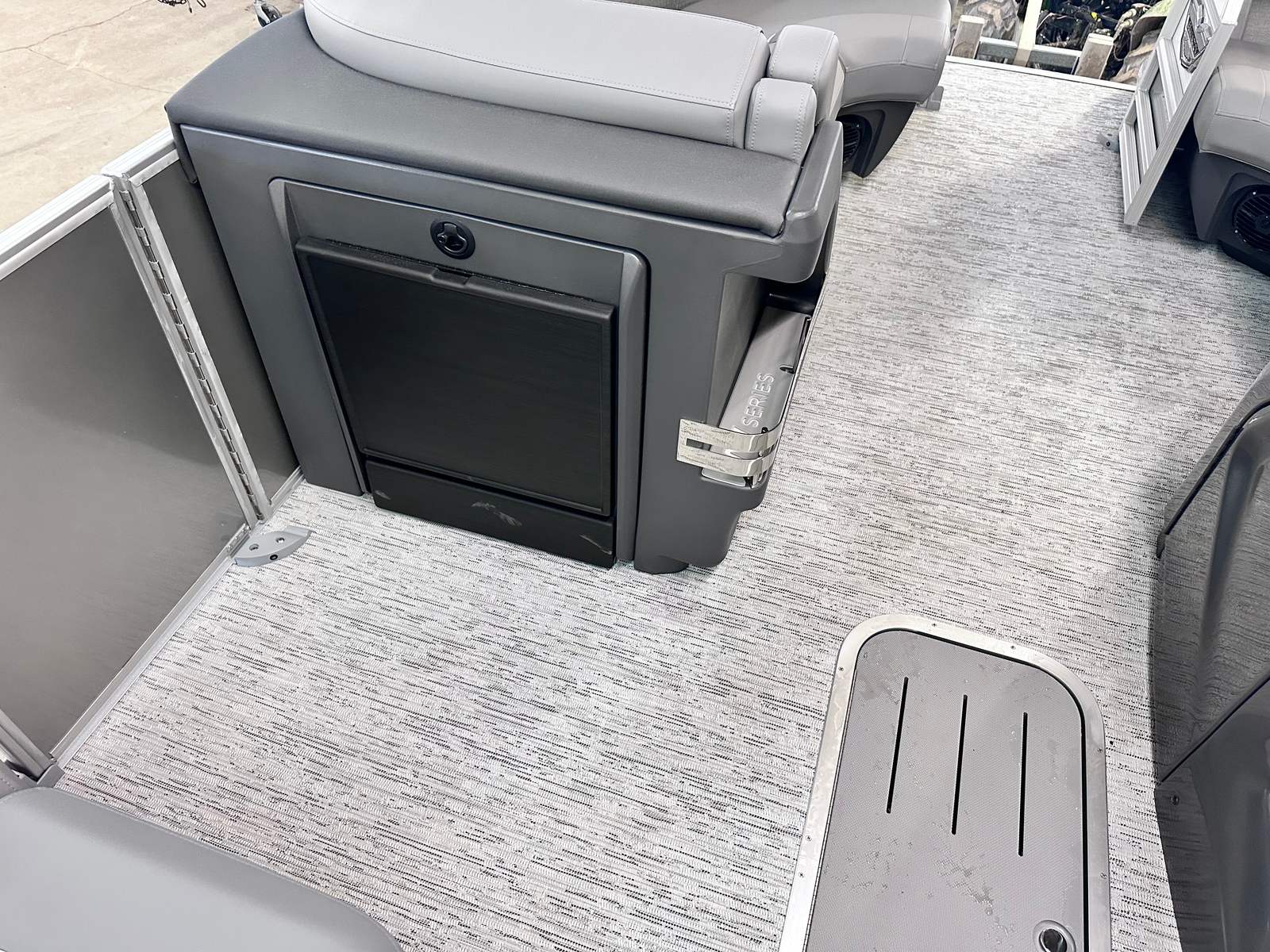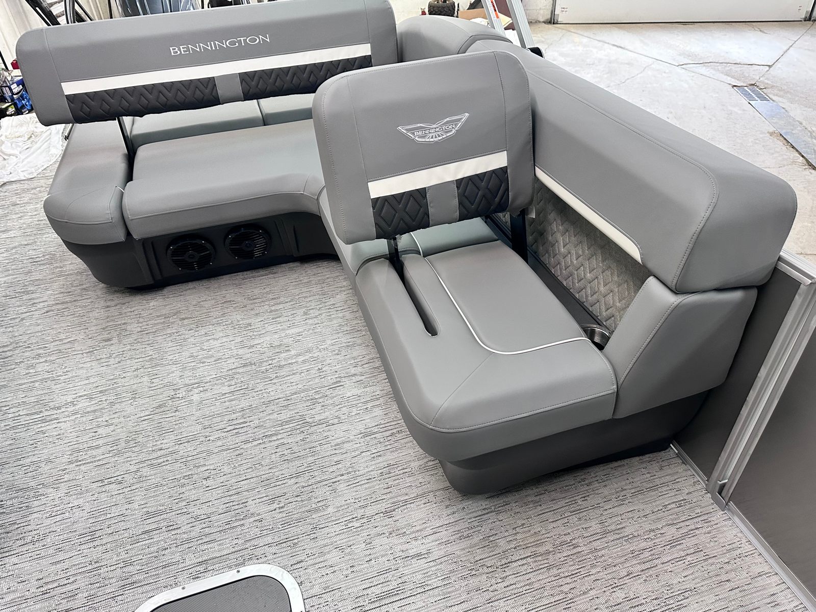 The Bennington 22 MSB SPS is packed with special features designed to enhance comfort, convenience, and fun. The electric power top curved Bimini provides effortless shade and protection from the sun, allowing you to relax in style no matter the weather. Bimini cable stays add stability and durability, ensuring your canopy remains secure even during breezy conditions. The base furniture M Series offers plush seating and ample room for guests, while the Zebrawood matte slate accents add a touch of sophistication to the interior. The ski tow bar opens up a world of watersports possibilities, making it easy to enjoy tubing, wakeboarding, or skiing with family and friends. The metal jacket tube protectant helps safeguard your pontoon’s structure, ensuring longevity and low maintenance. With the SPS Performance Package, you benefit from enhanced handling and fuel efficiency, while the 33-gallon transom direct fill system keeps you on the water longer.