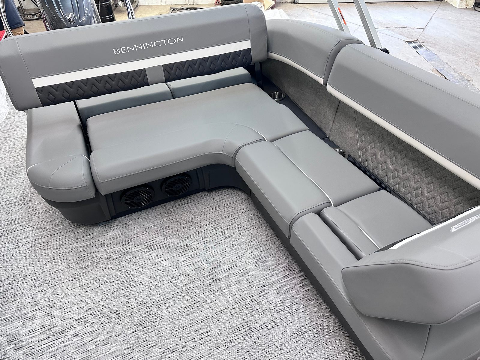 At the heart of this Bennington pontoon boat is the Yamaha F200XC engine, delivering a robust 200 horsepower for smooth, responsive performance. The single-engine setup ensures efficient power delivery, making it easy to navigate a variety of waterways with confidence. Whether you’re gliding across calm waters or picking up speed for watersports, the Yamaha F200XC offers reliability and impressive acceleration. The Yamaha Mechanical Pre-Rig – Delete Hydraulic Cylinder enhances the boat’s handling, providing precise control and a seamless boating experience. With the SPS Performance Package and a 33-gallon transom direct fill fuel system, you can enjoy extended adventures without frequent stops, maximizing your time on the water.