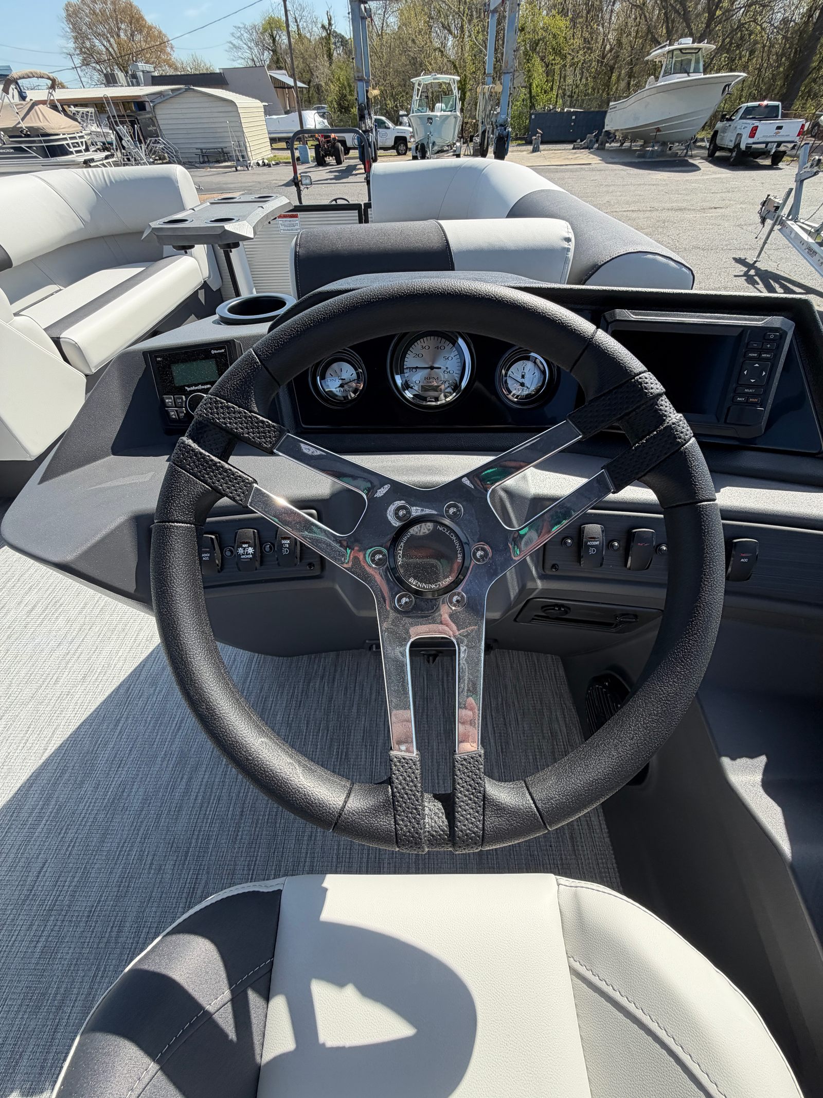 The 2026 Bennington 22 S1SB SPS is loaded with special features that set it apart from other pontoon boats for sale. The Black Anodizing adds a touch of modern elegance while providing extra durability against the elements. The Saltwater Package is designed to protect your investment and enhance performance in coastal environments, making this Bennington boat for sale a versatile choice for a variety of water conditions.Navigation is made simple and precise with the Garmin Echomap 52CV Chartplotter, allowing you to explore with confidence and discover new destinations. The Ski Tow Bar opens up a world of watersports possibilities, from tubing to wakeboarding, ensuring endless fun for family and friends. The S_ONE Console Wireless Charging keeps your devices powered up and ready for action, while the 21-inch Four Step Ladder provides easy access in and out of the water.For added convenience, the Analog Rocker Switching and Analog VeeThree Gauges offer intuitive control and clear readouts, so you can focus on enjoying your time on the water. Every detail of the Bennington 22 S1SB SPS is thoughtfully designed to maximize comfort, safety, and enjoyment.