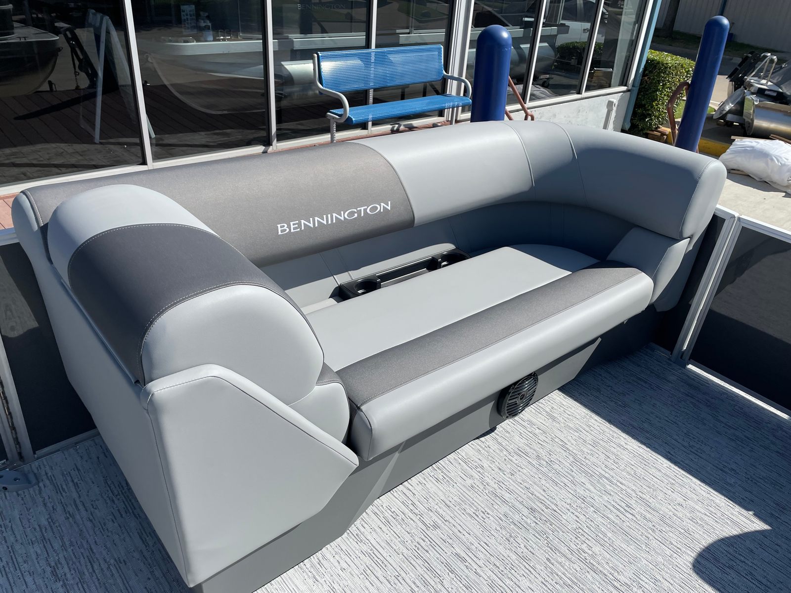 This Bennington pontoon is loaded with features designed to enhance your boating experience. The Serene Soft Touch Vinyl with Simtex accents provides plush, durable seating that invites you to relax in style. The Shadow Grey and Carbon base and accent colors create a modern, upscale atmosphere, while the Ironwood dash accent adds a touch of elegance to the helm. The windscreen offers protection from the elements, ensuring a comfortable ride in varying conditions.The extended aft deck is perfect for lounging, socializing, or preparing for water activities, while the 54-inch aluminum ski pylon is ready for action whenever you are. The single switch battery system simplifies power management, giving you peace of mind and convenience during your outings. Every detail of the Bennington 22 SS SPS is crafted to deliver a premium experience, making it a standout among pontoon boats for sale.