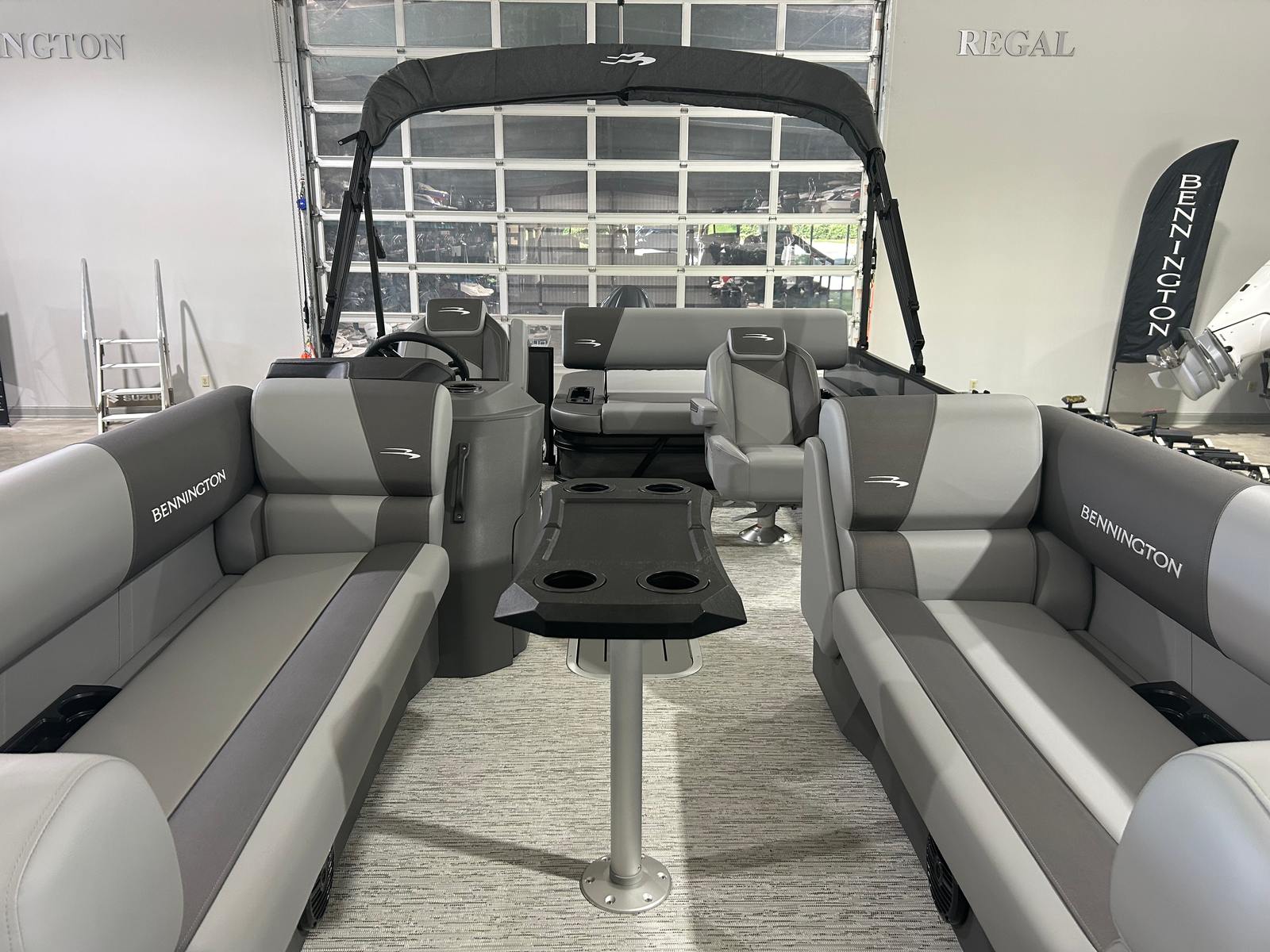 The Bennington 22 SSB SPS is as practical as it is stylish. The in-floor storage keeps your gear secure and out of the way, making it easy to transition from cruising to water sports or fishing. The wireless charger is a modern convenience that ensures your devices are always ready to capture memories or stay connected.Docking and maneuvering are a breeze thanks to the responsive handling and thoughtfully designed controls. The extended aft deck not only adds to the boat’s visual appeal but also makes boarding and disembarking safer and more convenient. The durable canvas and Bimini provide protection from the elements, allowing you to enjoy your boat in a variety of weather conditions.Fuel efficiency is another key benefit, with the 150 HP engine delivering impressive performance without excessive fuel consumption. This means more time on the water and less time at the pump, making every outing more enjoyable and cost-effective.