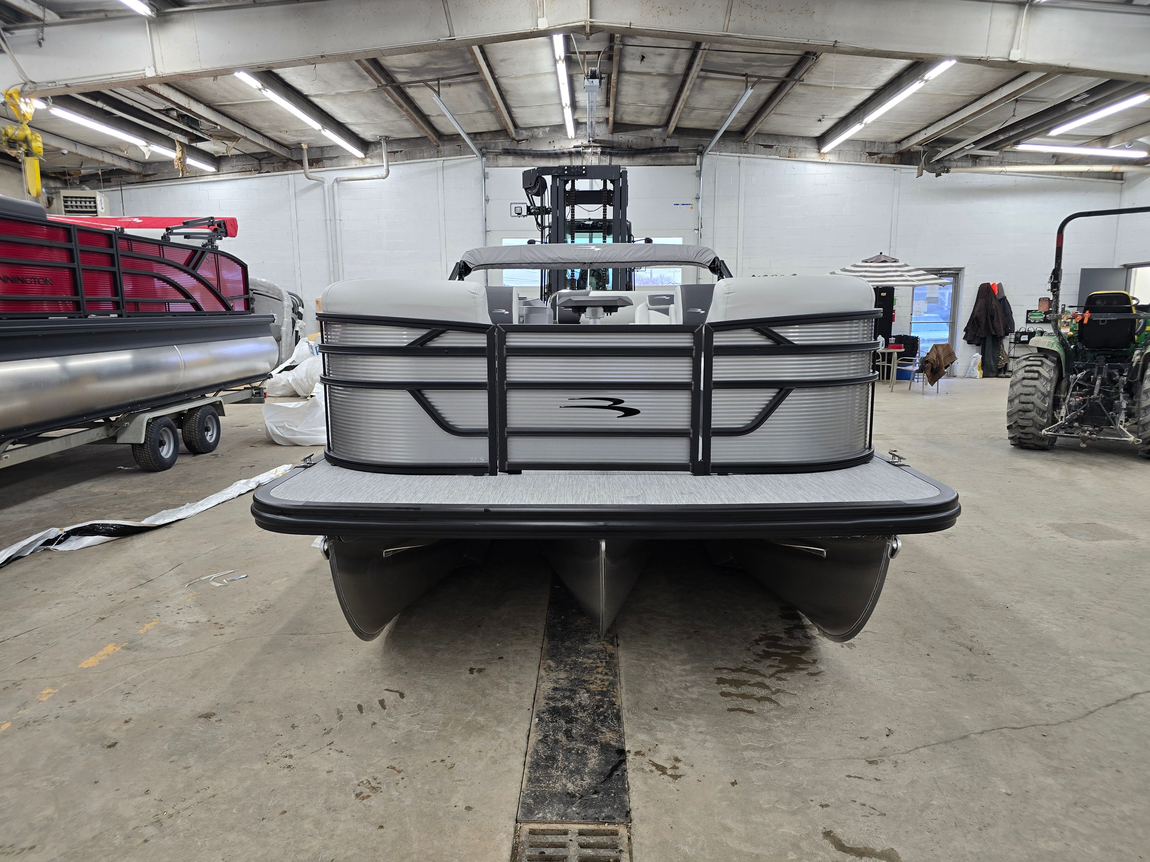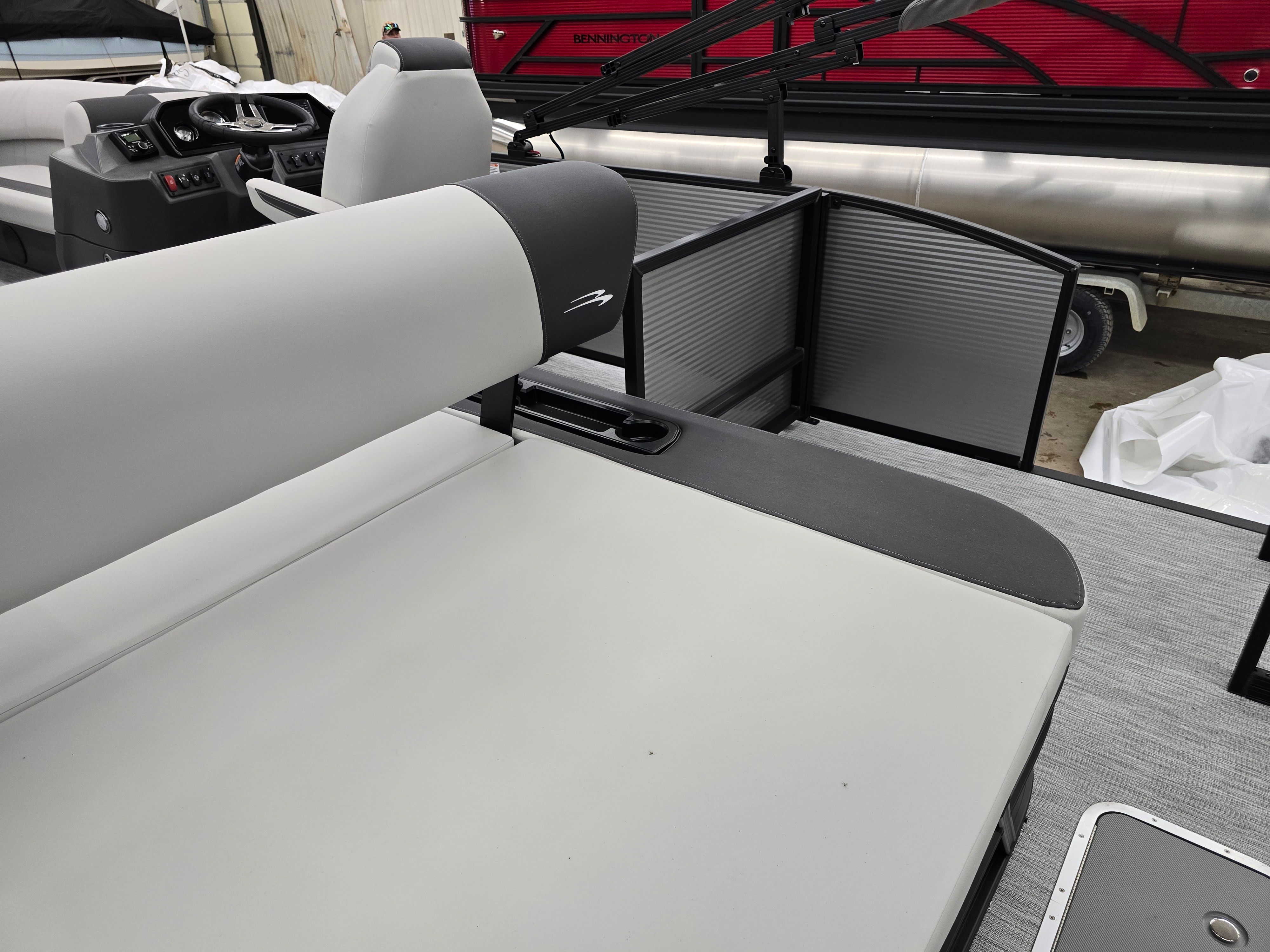 The 2026 Bennington 22 SSB SPS is packed with premium features that set it apart from other pontoon boats for sale. The striking Blackout Logos and Blackout Luxe Package give this boat a modern, sophisticated look that is sure to turn heads at the marina. The Panel and Canvas in Metallic Silver create a cohesive and stylish appearance, while the No Accent - Textured finish adds a touch of understated elegance.Inside, the Ironwood Dash Accent provides a warm, inviting feel to the helm, and the wireless charger keeps your devices powered up for a full day of fun. The Ski Tow Bar - SPS opens up a world of water sports possibilities, making it easy to tow skiers, wakeboarders, or tubes for endless entertainment on the water.