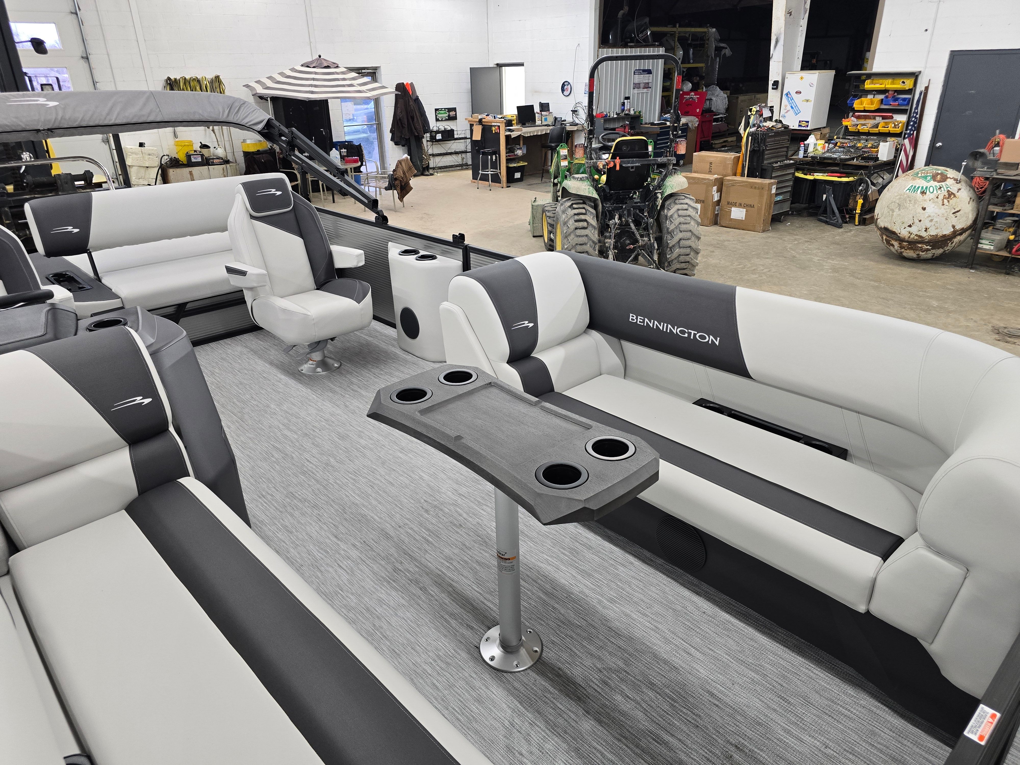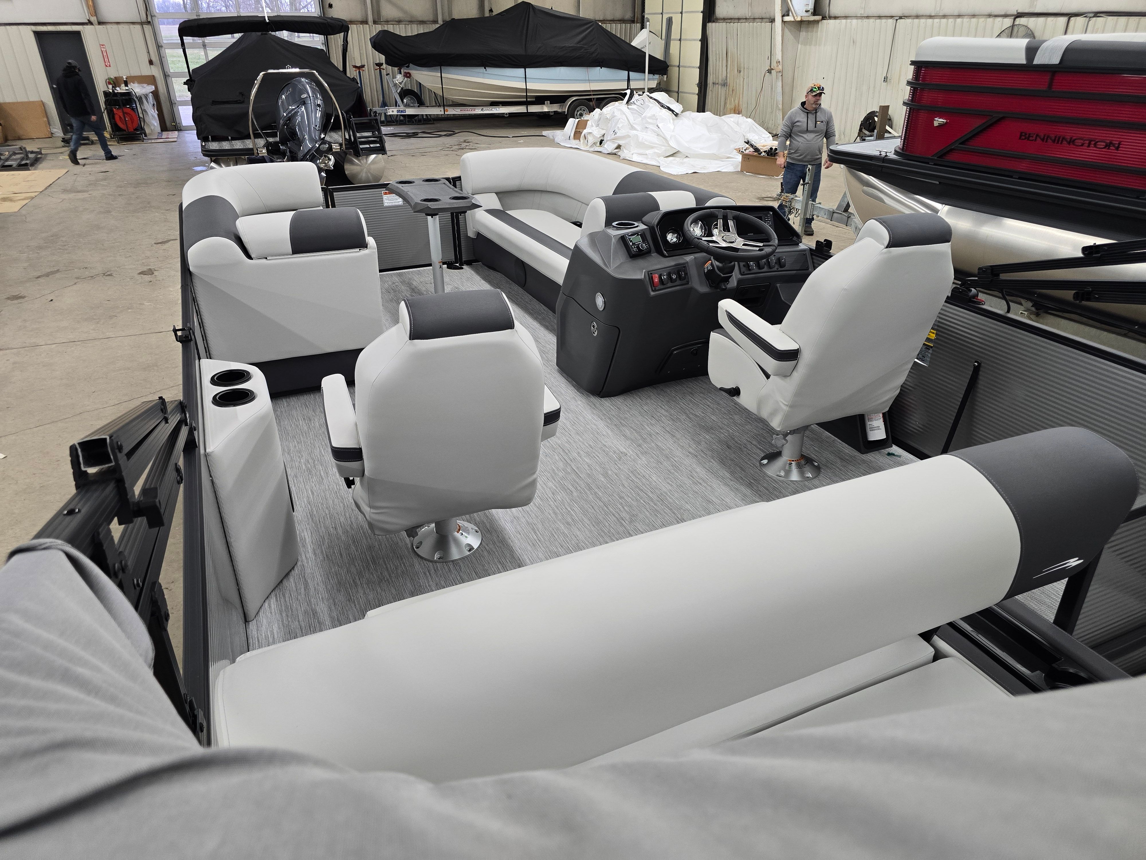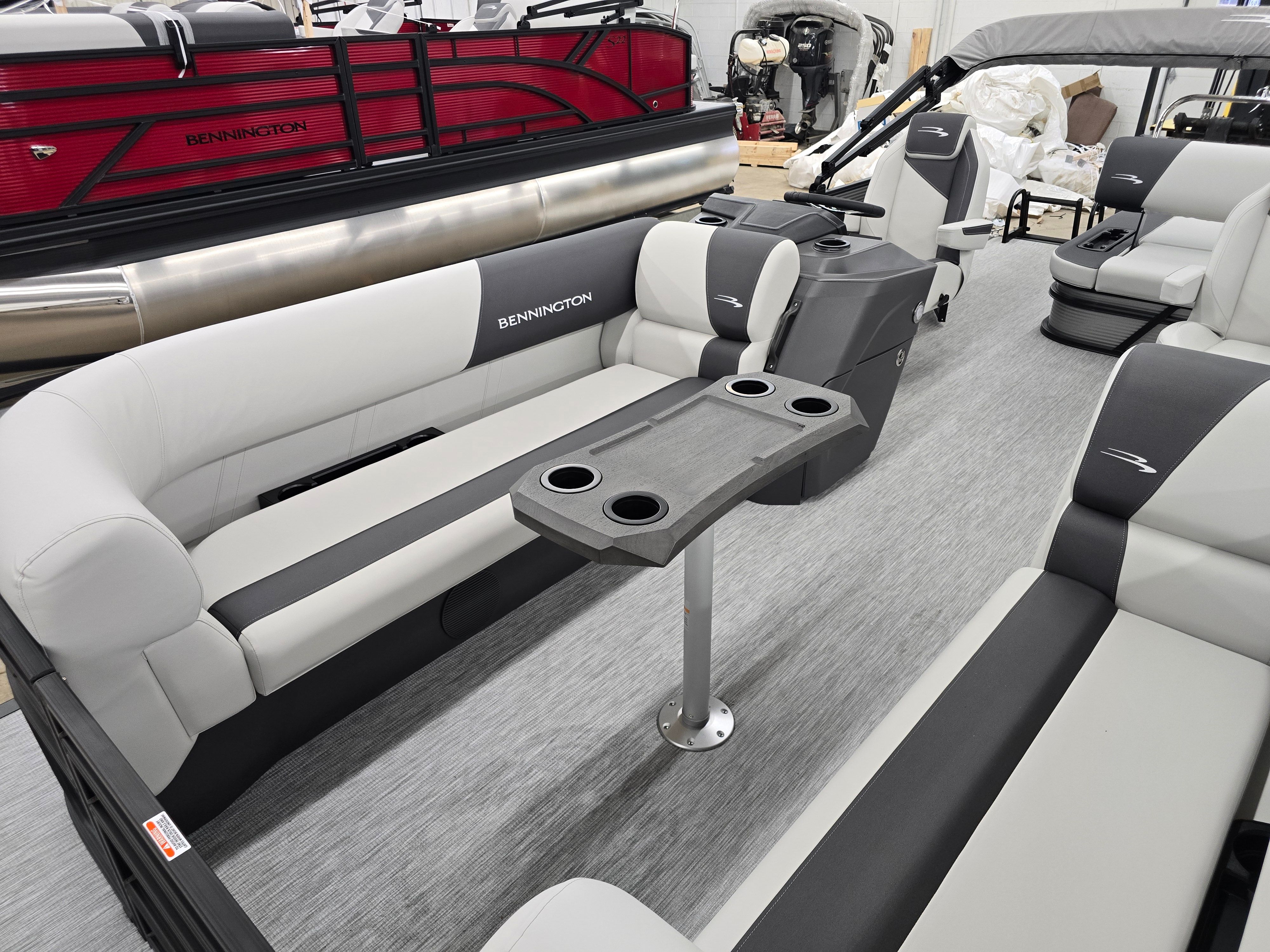 Owning the Bennington 22 SSB SPS means embracing a lifestyle of relaxation, excitement, and connection. The spacious deck layout offers ample room for friends and family to spread out, lounge, and enjoy the sunshine. The plush seating and thoughtful design create a comfortable environment for socializing, dining, or simply soaking in the views. With its powerful Yamaha engine, this pontoon boat delivers the performance needed for thrilling rides or leisurely cruises, adapting to your mood and preferences.The wireless charger ensures that your devices stay ready for music, navigation, or capturing memories, while the ski tow bar adds a dynamic element for those who crave adventure. The stylish exterior, highlighted by the blackout logos and metallic silver finishes, makes a bold statement wherever you go, reflecting your taste for quality and innovation.