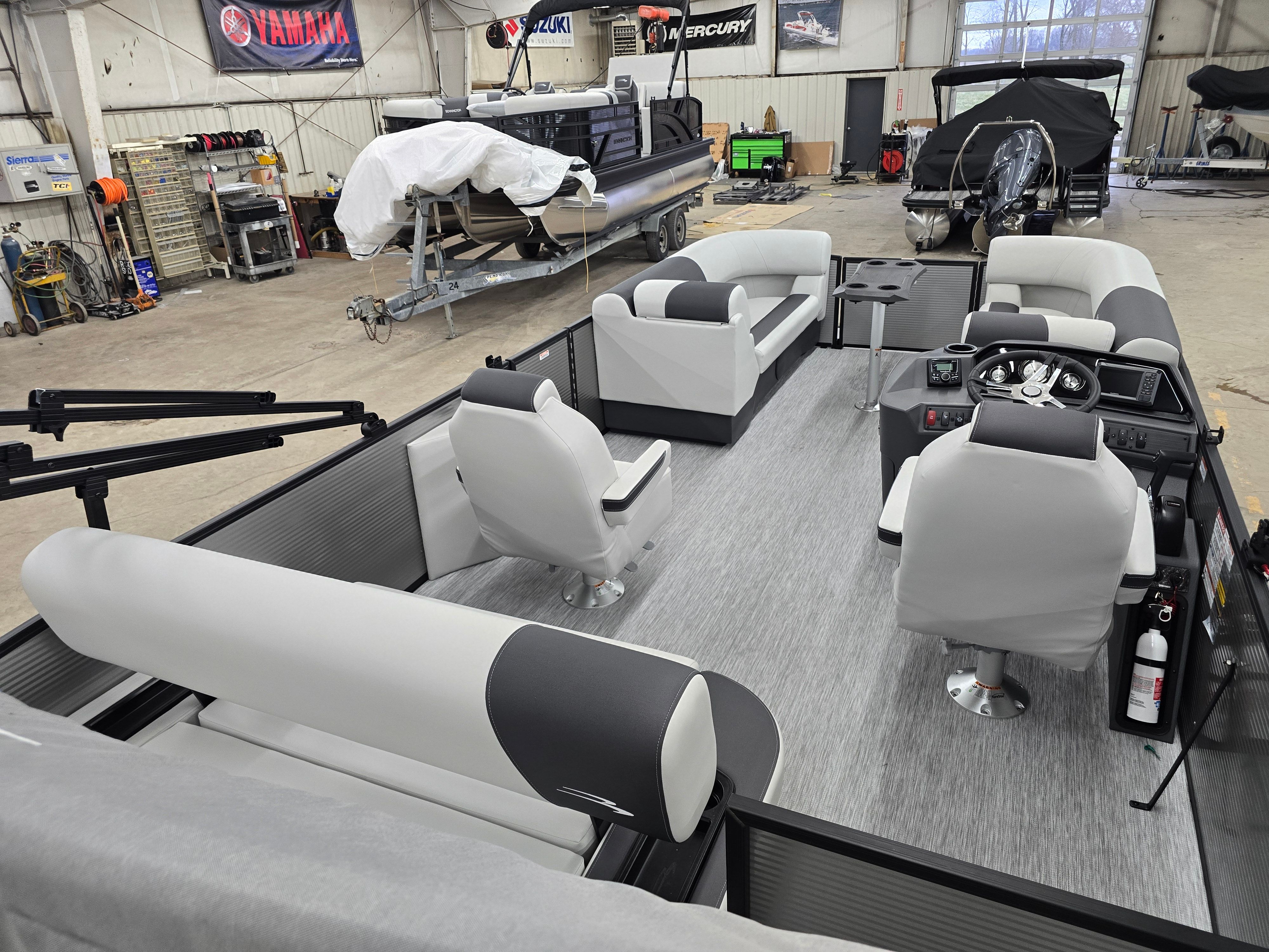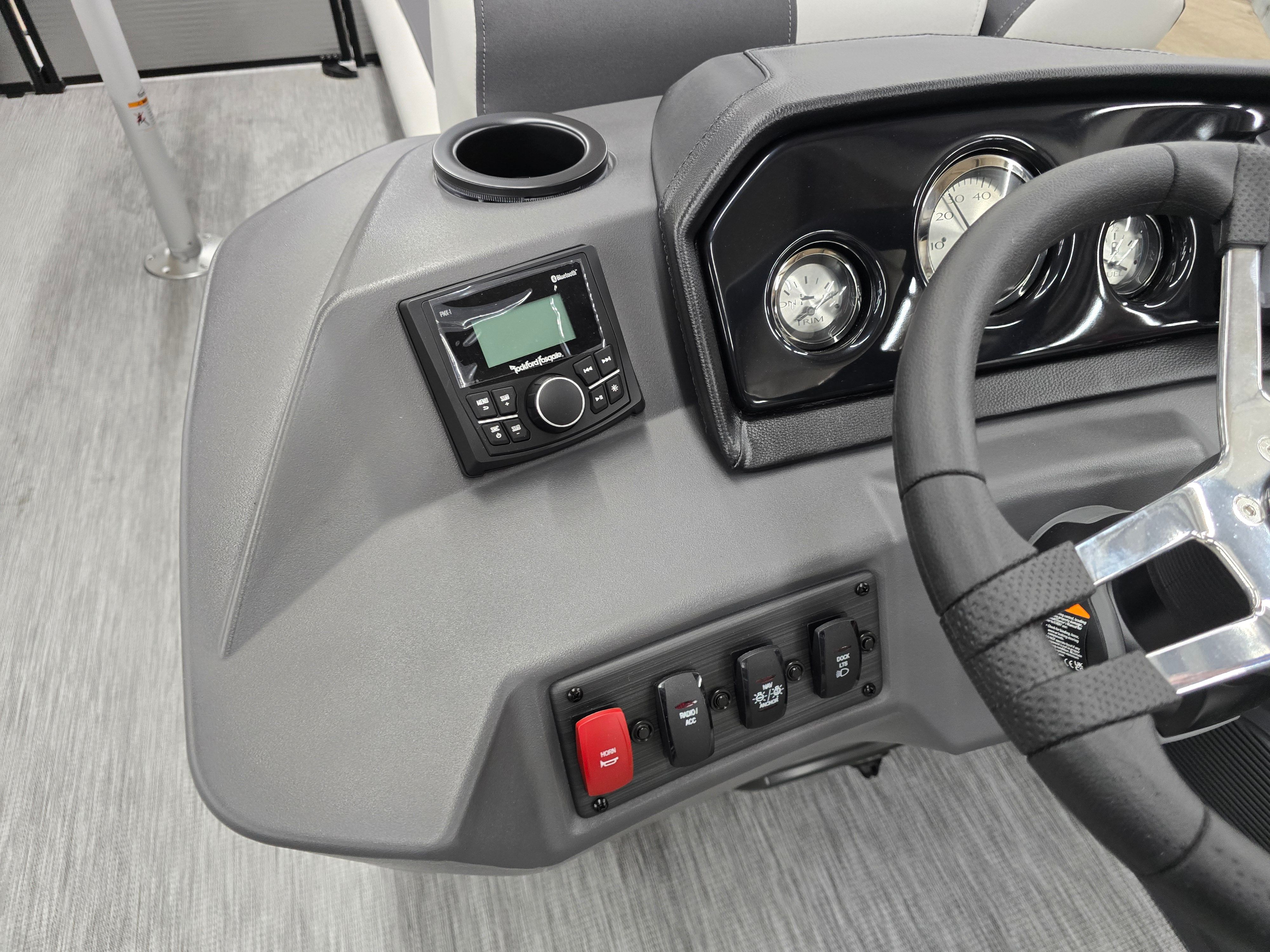 The Bennington 22 SSB SPS is designed with practicality in mind, making ownership as enjoyable as your time on the water. Its nearly 23-foot length strikes the perfect balance between spaciousness and maneuverability, allowing for easy docking and storage. The sturdy construction and reliable Yamaha engine mean less time worrying about maintenance and more time enjoying the water.Fuel efficiency is another key advantage, with the 150-horsepower engine providing plenty of power without excessive fuel consumption. The intuitive helm layout, enhanced by the Ironwood Dash Accent, ensures that every control is within easy reach, making navigation simple and safe. The blackout luxe package not only adds style but also helps protect key components from the elements, ensuring your boat looks great season after season.