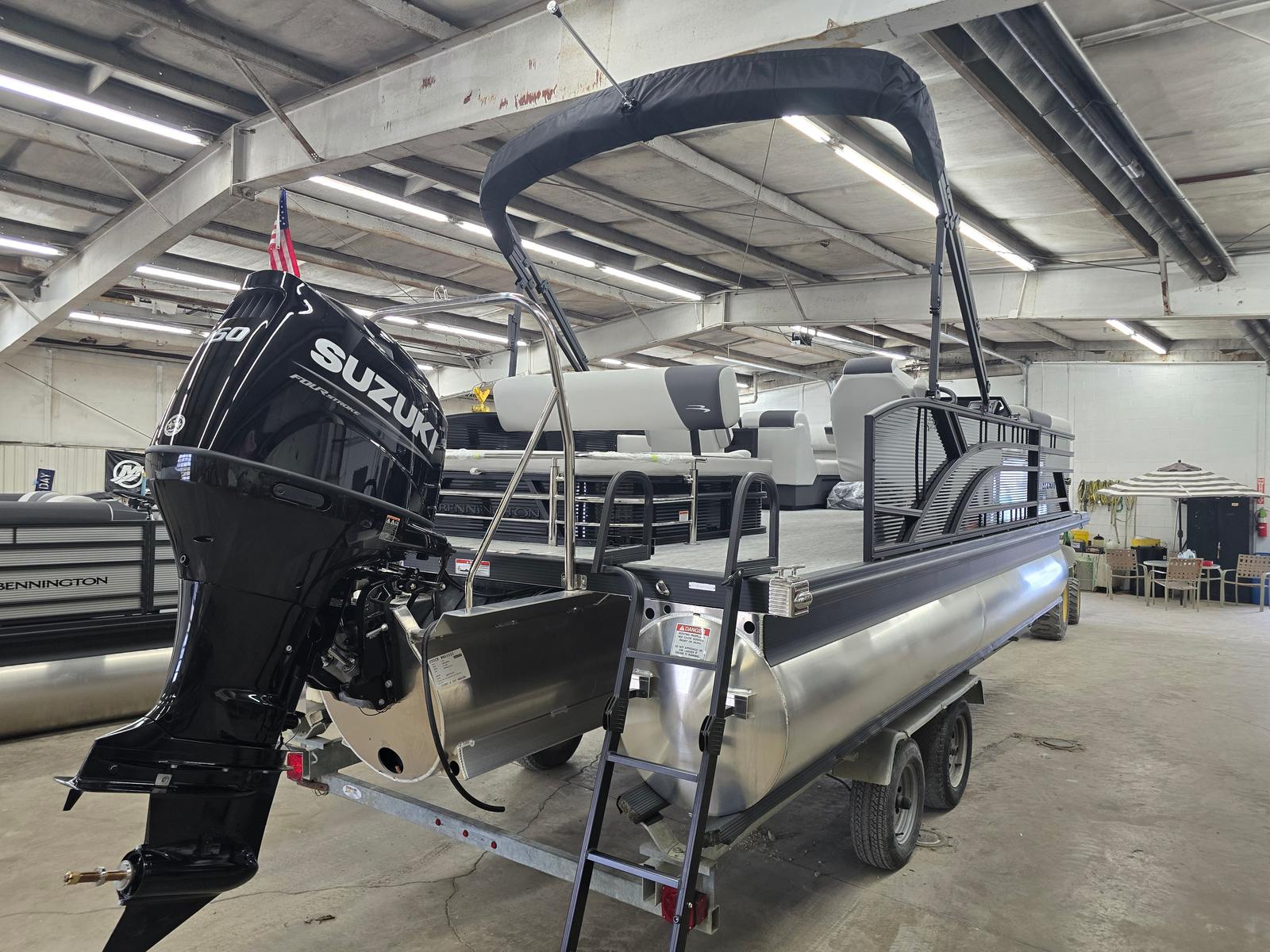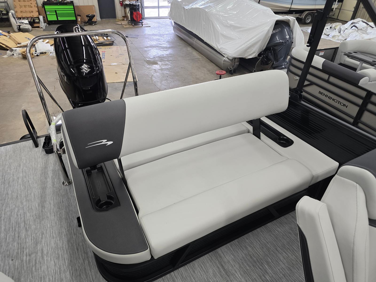 The 2026 Bennington 22 SSB SPS Pontoon is a standout choice for anyone seeking a new pontoon boat for sale that combines luxury, performance, and versatility. With its powerful 150-horsepower engine, sophisticated styling, and a host of premium features—including the Suzuki Mechanical Pre-Rig, Midnight Black canvas, Ironwood Dash Accent, wireless charger, Blackout Luxe Package, ski tow bar, spacious Bimini, and Gemini Black panel—this Bennington boat for sale is ready to deliver endless fun and relaxation on the water.Whether you are planning family adventures, water sports, or tranquil escapes, the Bennington 22 SSB SPS offers everything you need for an unforgettable boating experience. Don’t miss your chance to own this exceptional pontoon—contact your local dealer today to learn more and schedule a viewing. Your next great adventure awaits on the water with the Bennington 22 SSB SPS Pontoon!