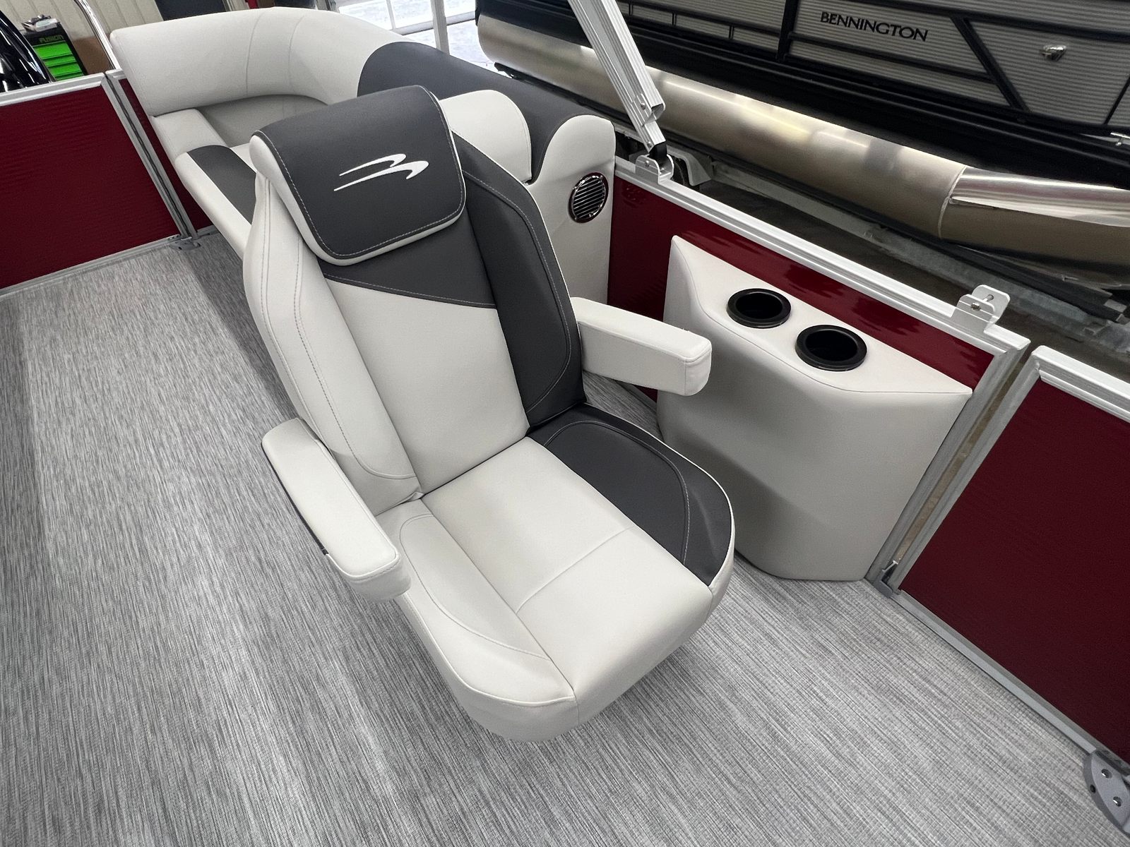 The 2026 Bennington 22 SSR SPS is loaded with features that enhance comfort, convenience, and style. The striking Absolute Red panel color and canvas create a bold, unified look, while the base vinyl in Leon Light Silver adds a touch of sophistication to the spacious seating areas. Dimensional brushed silver logos and the Package Trim S Series Snap further elevate the boat’s aesthetic appeal, ensuring you make a statement wherever you go.Inside, the thoughtfully designed layout maximizes space for lounging, socializing, and enjoying the open water. The S Series Snap trim package adds a refined finish, while the high-quality materials ensure durability and easy maintenance. The analog switching and display systems provide user-friendly operation, allowing you to monitor and control key functions with ease.