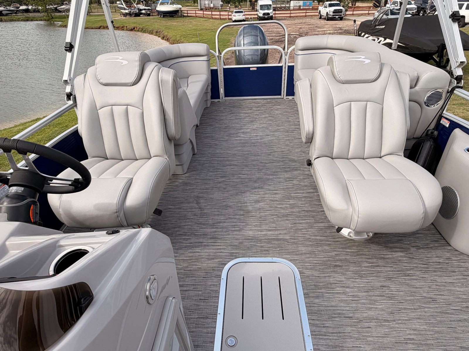 Powered by a single engine with an impressive 150 horsepower, the Bennington 22 Svsr SPS delivers a smooth and responsive ride. With only 19 engine hours, this pontoon boat for sale offers the reliability and efficiency you would expect from a nearly new vessel. The engine’s robust performance allows for easy cruising, quick acceleration, and the ability to handle a variety of water conditions with confidence. Whether you are towing water toys, exploring new coves, or simply enjoying a leisurely cruise, the 150 HP engine ensures you have the power you need for every adventure.