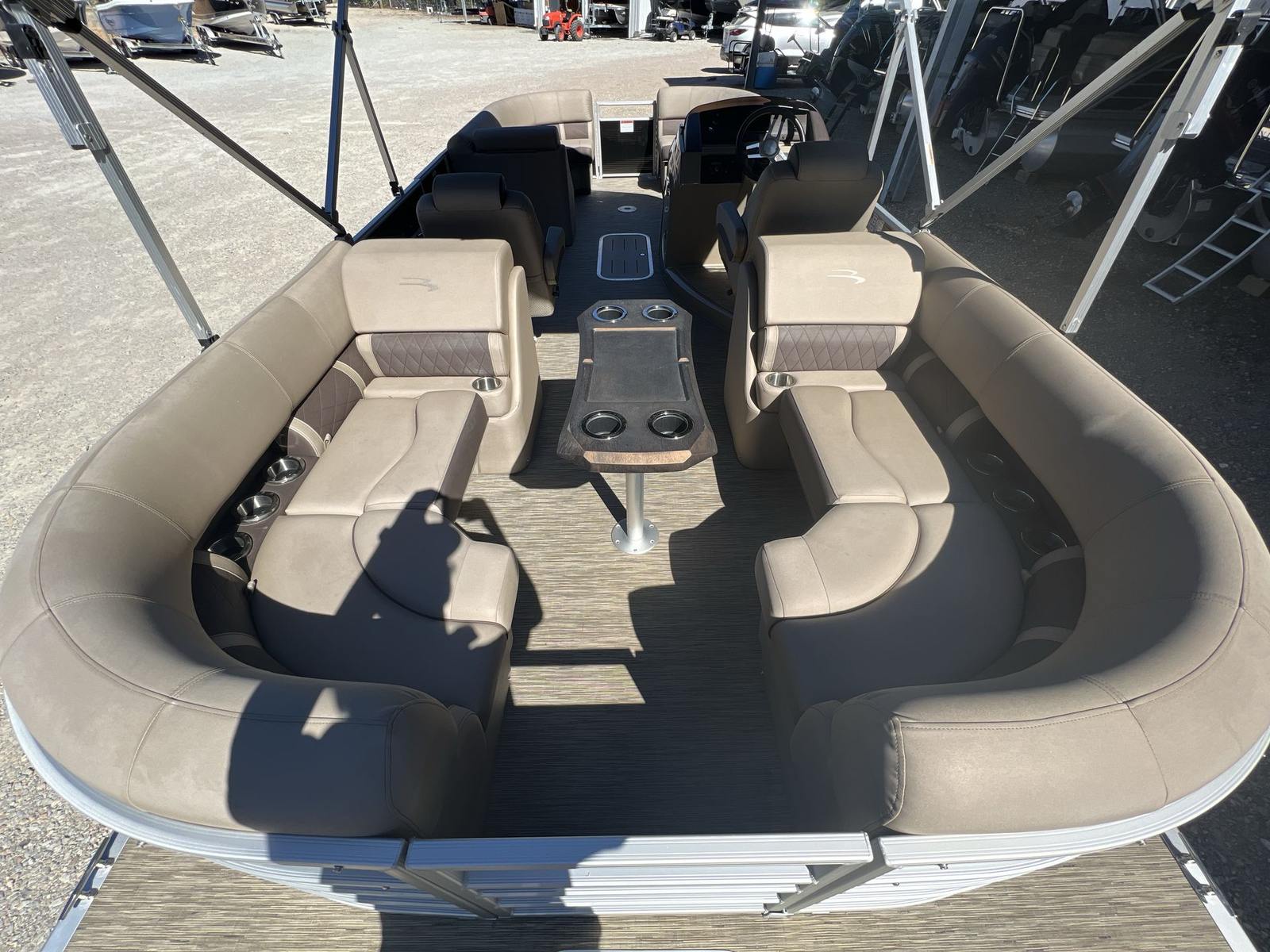 The Bennington 23 LSR is thoughtfully equipped to enhance your boating experience. Its spacious deck layout provides comfortable seating for family and friends, allowing everyone to stretch out and enjoy the ride. The pontoon’s design maximizes usable space, making it easy to move around and access different areas of the boat. The quality construction and attention to detail are evident in every aspect, from the durable flooring to the stylish upholstery. With a length of 22.5 feet, this pontoon boat offers plenty of room for socializing, dining, and sunbathing, making it a versatile platform for all your favorite activities.