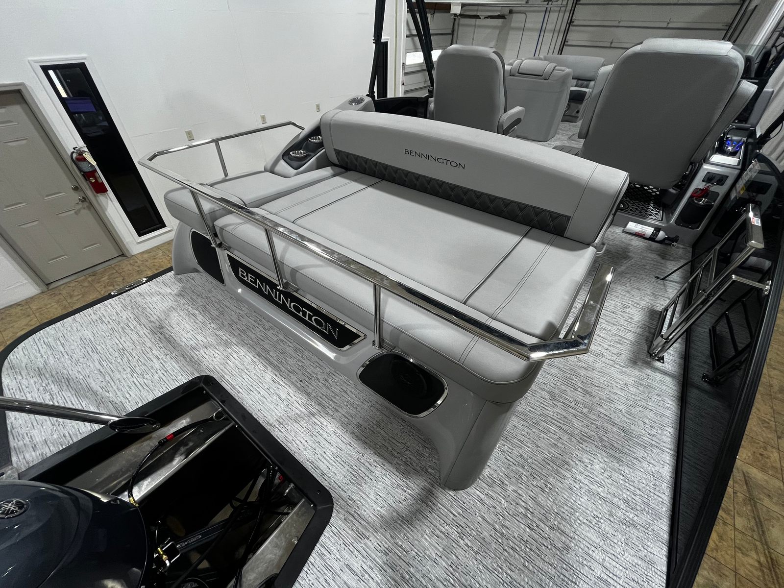 Powering the Bennington 23 RSB ESP is the formidable Yamaha F300XCB engine, delivering a robust 300 horsepower. This single-engine setup provides exceptional acceleration, smooth cruising, and reliable performance, whether you’re gliding across calm lakes or tackling open waters. The advanced engineering of the Yamaha F300XCB ensures efficient fuel consumption and low maintenance, allowing you to spend more time enjoying the water and less time worrying about upkeep. With this level of power, the Bennington boat for sale is perfect for water sports, fast-paced adventures, or leisurely cruises.