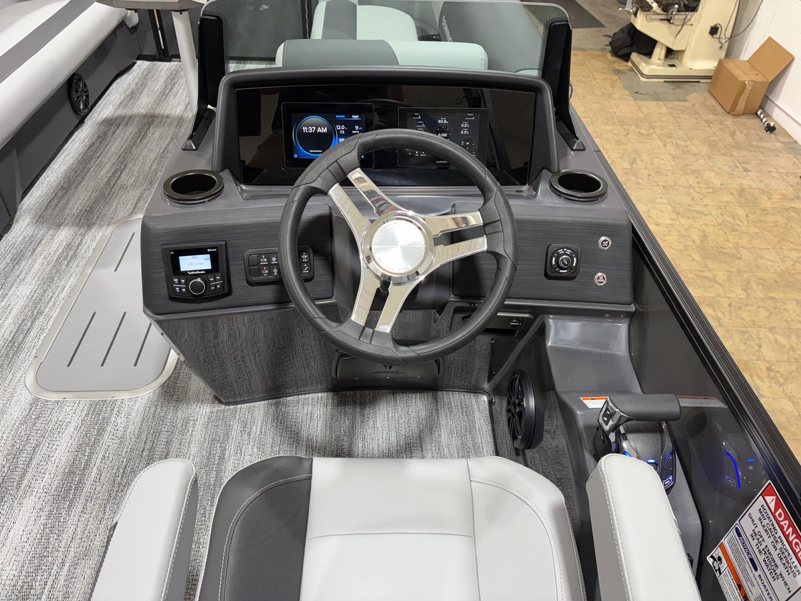 At the heart of this Bennington pontoon boat is a powerful Yamaha F200XSA engine, delivering an impressive 200 horsepower for smooth, responsive performance. Whether you’re cruising at a leisurely pace or powering across the water, the Yamaha engine ensures reliable operation and efficient fuel consumption. The Yamaha Integrated Steering Pre-Rig (S) enhances handling, making navigation effortless and precise. With only one engine to manage, maintenance is straightforward, and the dual switch battery system with fuse provides peace of mind for extended outings.