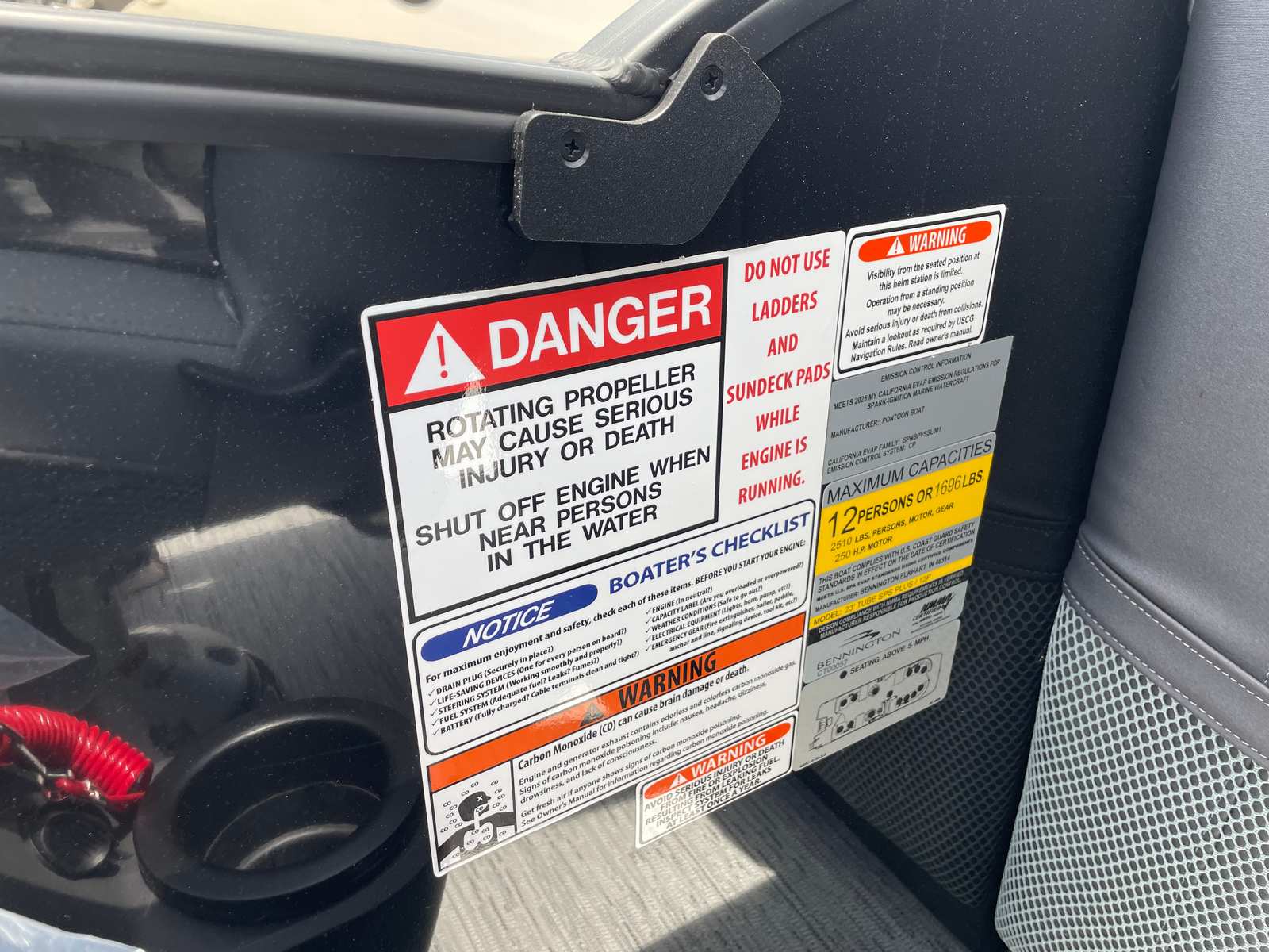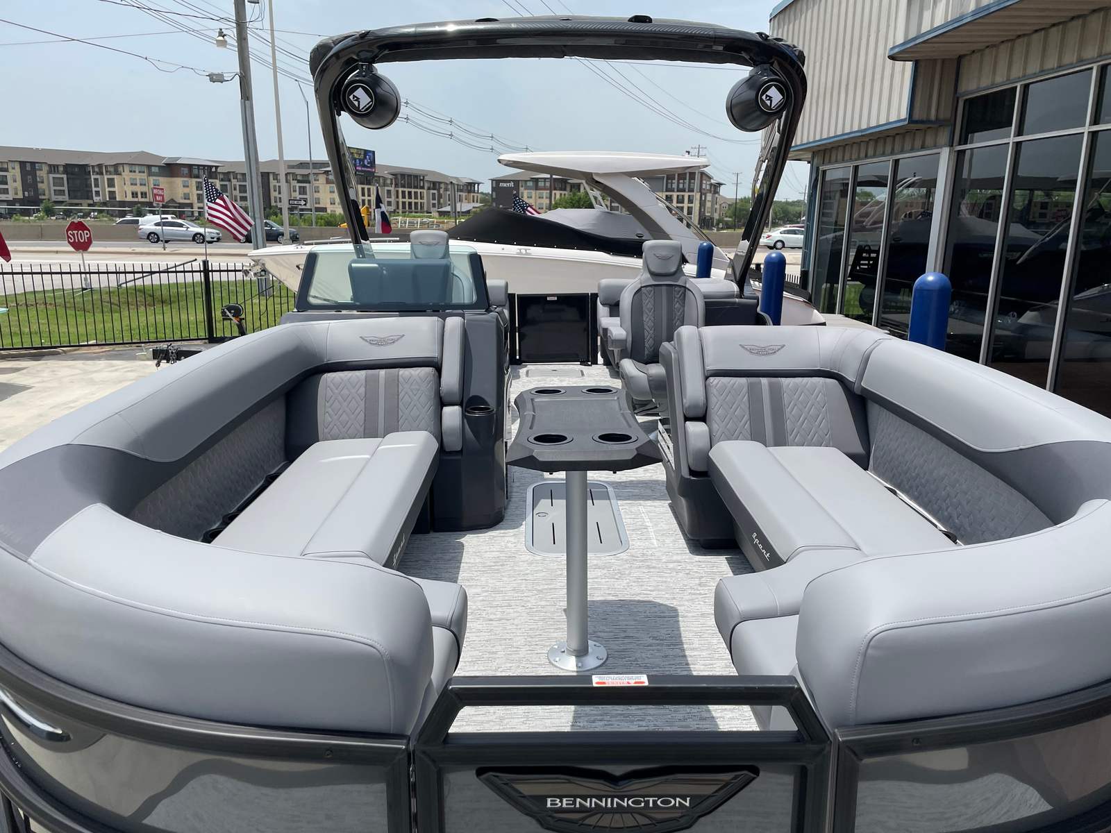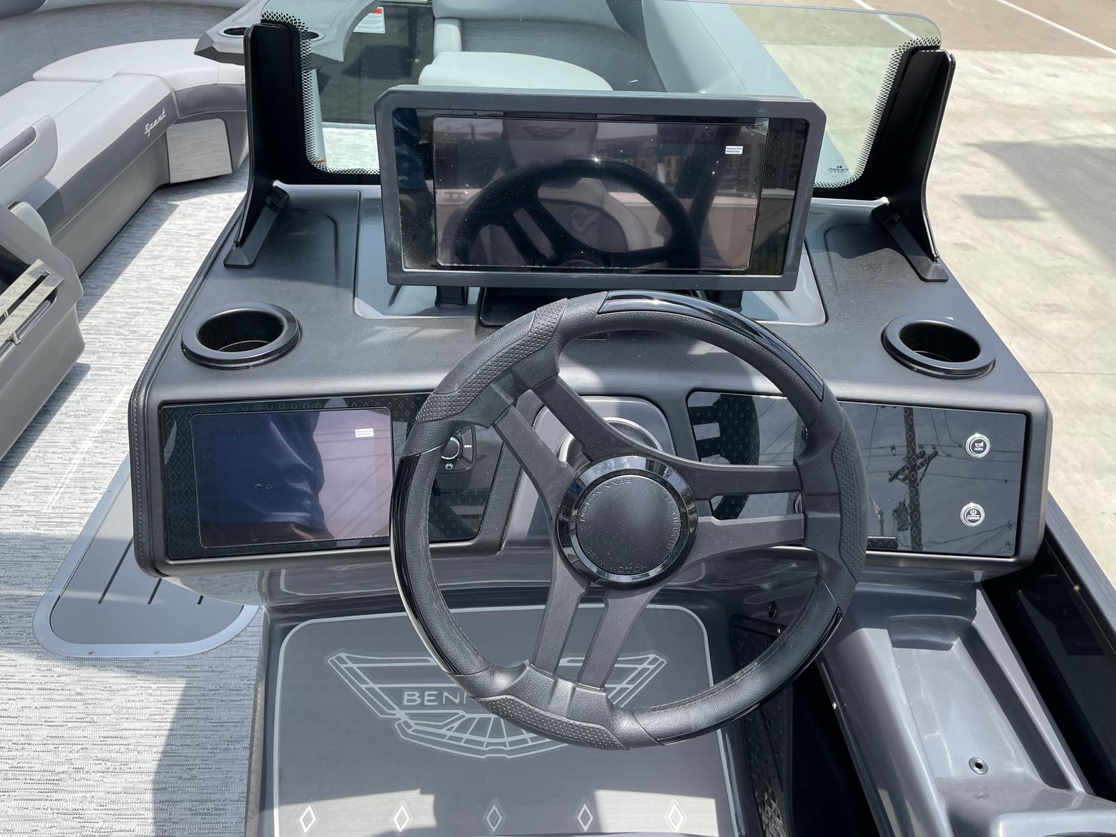 The Bennington 24 MFB SPS Plus is loaded with special features that elevate your time on the water. Enjoy a vibrant atmosphere with RGB speakers that let you set the mood with customizable lighting and high-quality sound. The toekick lights, with two 41-inch and two 62-inch fixtures, add a stylish glow to the deck, while lumbar lighting enhances both safety and ambiance during evening cruises. The Sport Furniture M Series provides plush, ergonomic seating for maximum comfort, and the Zebrawood Matte Slate accents add a touch of modern elegance to the interior.For those who love water sports, the ski tow bar makes it easy to enjoy tubing, wakeboarding, or skiing with friends and family. The Valencia Grey color scheme gives the boat a sophisticated, contemporary look, complemented by the black rub rail insert for added durability and style. Every detail of the Bennington 24 MFB SPS Plus is crafted to deliver a premium boating experience.