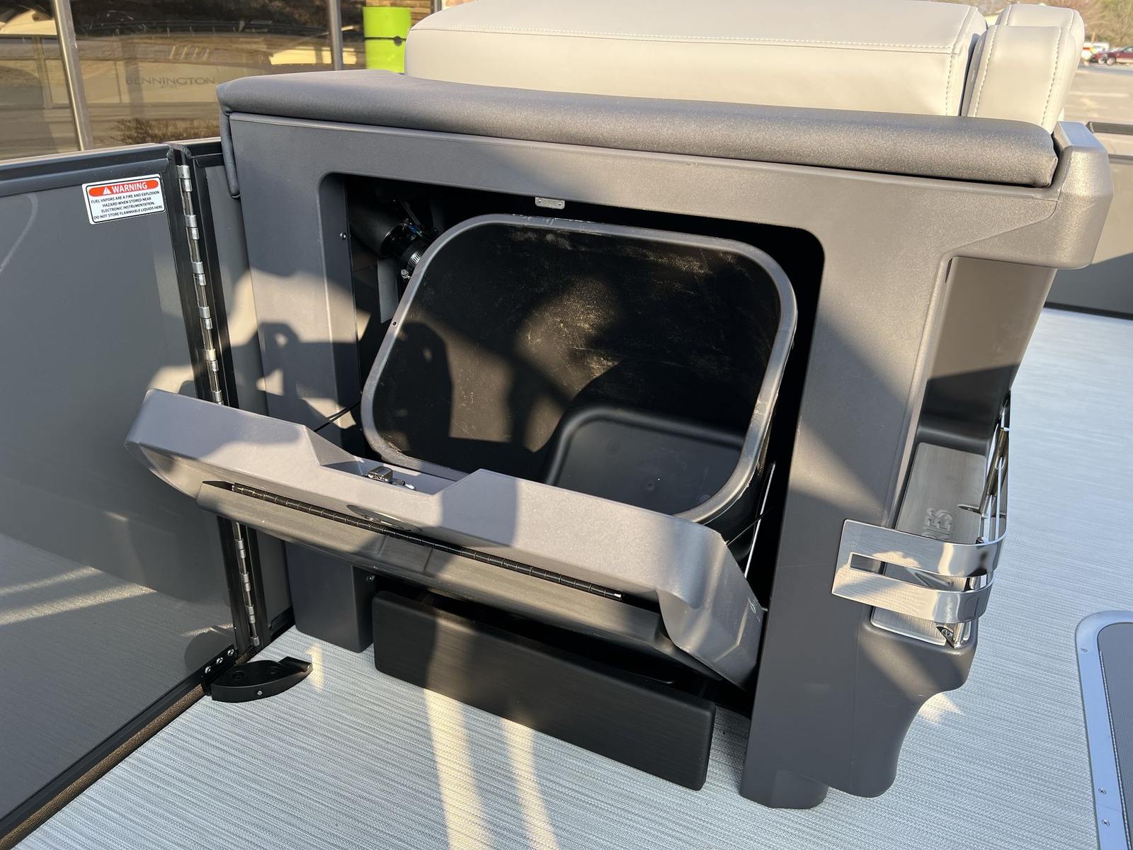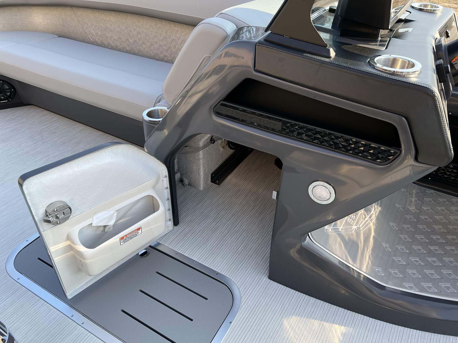The Bennington 24 MSB ESP is packed with special features that elevate your boating experience to new heights. Enjoy the convenience and safety of the Battery: Dual Switch with Fuse, ensuring reliable power management throughout your journey. Set the mood with the RGB Control M Series, which allows you to customize the ambiance with vibrant lighting options. The RGB Speakers and Toekick Lights 2-62" create a captivating atmosphere, perfect for evening cruises or festive gatherings.Immerse yourself in premium sound quality with six Rockford Fosgate M1 Lighted Speakers, delivering crystal-clear audio and dynamic lighting effects. Ten Illuminated Cupholders add a touch of elegance and practicality, making it easy to keep your favorite beverages close at hand. The Elevated Console with Pocket Mythos provides enhanced visibility and convenient storage, ensuring that everything you need is within reach. Every feature is thoughtfully designed to enhance comfort, convenience, and enjoyment on the water.