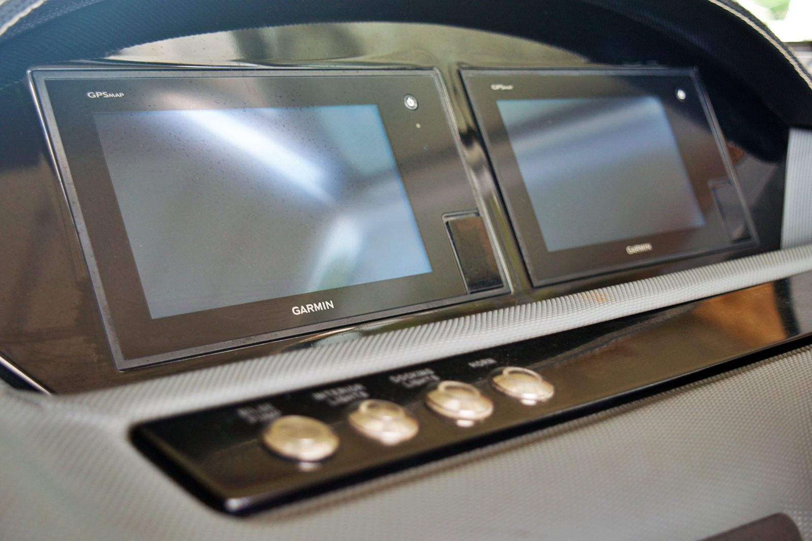 - Garmin Dual 7" Touchscreen Displays (Instrument Cluster, GPS Chartplot Navigation, Engine Diagnostics, Water Depth, and more!)