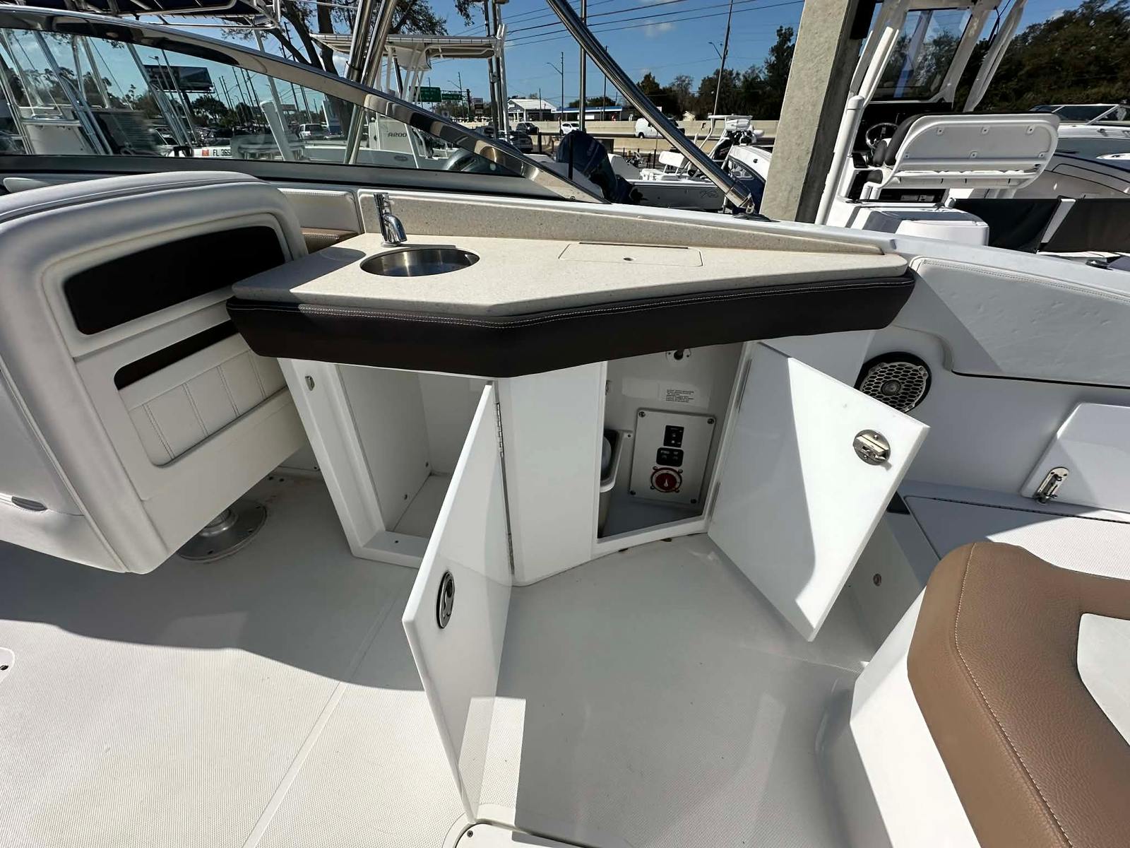 Beyond its recreational appeal, the 2015 Cobalt 26 SD offers a range of practical benefits that make ownership a breeze. The boat’s manageable length makes it easy to store in most marinas or on a trailer, while its dual engines simplify docking and maneuvering in tight spaces. Fuel efficiency is enhanced by the modern engine design, allowing you to spend more time on the water and less time at the pump.The Cobalt 26 SD’s thoughtful layout includes ample storage compartments for all your gear, from life jackets and water toys to picnic supplies and fishing equipment. This makes it easy to keep the deck clutter-free and organized, ensuring a pleasant experience for everyone on board. The durable construction and high-quality materials used throughout the boat mean that maintenance is straightforward, allowing you to focus on enjoying your time on the water.