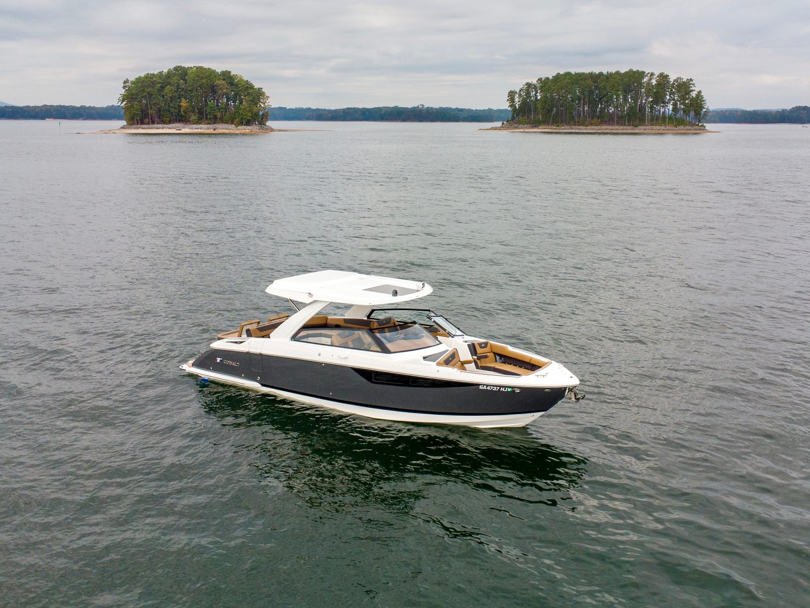 The 2023 Cobalt R35 is a premier freshwater flagship that blends style, comfort, and performance in a sleek 35-foot platform. Kept undercover its entire life, this R35 looks like new and is designed for entertaining and weekend escapes. The cockpit and bow are spacious, with Soft-Trac flooring throughout and a hydraulic swim platform with flip-down step for easy water access. The hardtop with electric retractable awning provides shade and shelter, making every outing comfortable.