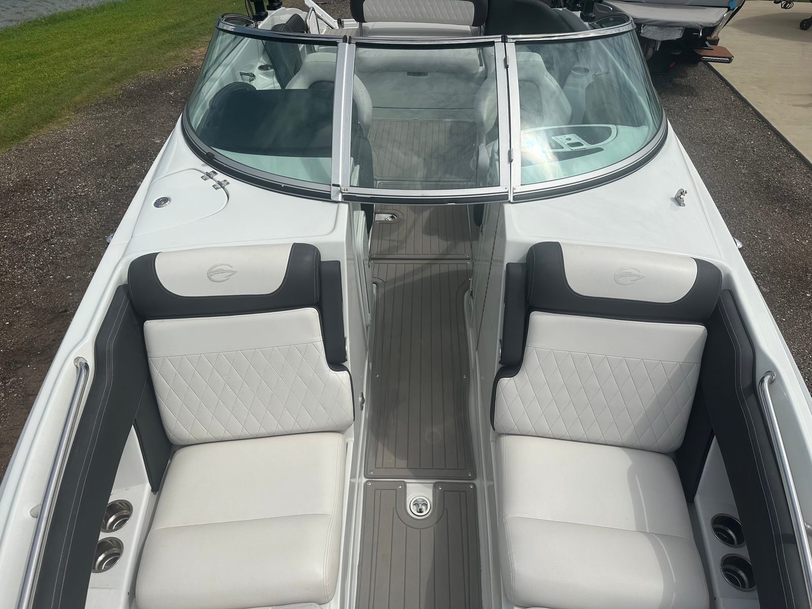 Under the hood, the Crownline E255 Surf is powered by a single robust engine boasting 350 horsepower. With only 164 engine hours, this used Bowrider is in excellent condition and ready for many more adventures. The powerful engine ensures quick acceleration, smooth cruising, and plenty of torque for towing water toys or wake surfers. The E255 Surf’s hull design is optimized for stability and agility, making it easy to handle in a variety of water conditions. Whether you’re carving through waves or gliding across calm lakes, this boat offers a responsive and exhilarating ride.