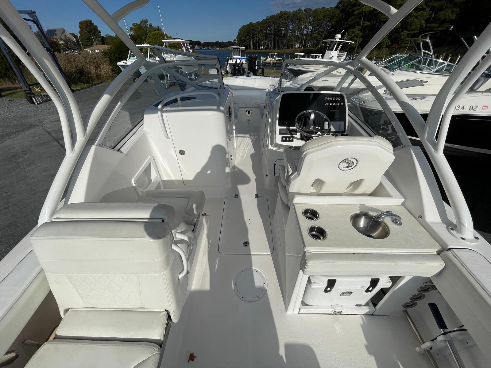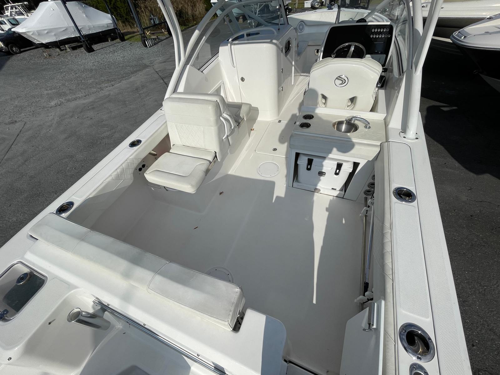 The Edgewater 248 CX shines in a wide range of boating scenarios. For families, it’s the perfect platform for weekend outings, offering plenty of space for kids to play and adults to relax. The dual console layout makes it easy to transition from cruising to water sports or fishing, adapting to your group’s interests and activities.Anglers will appreciate the boat’s stability and ample deck space, providing a comfortable and efficient setup for casting lines and reeling in the catch of the day. For those seeking relaxation, the plush seating and smooth ride make every journey enjoyable, whether you’re exploring new waterways or anchoring for a swim.This Edgewater boat for sale is also an excellent choice for couples or groups looking to escape the ordinary and experience the freedom of the open water. Its combination of performance, comfort, and versatility makes it a standout option for anyone seeking a high-quality dual console boat.
