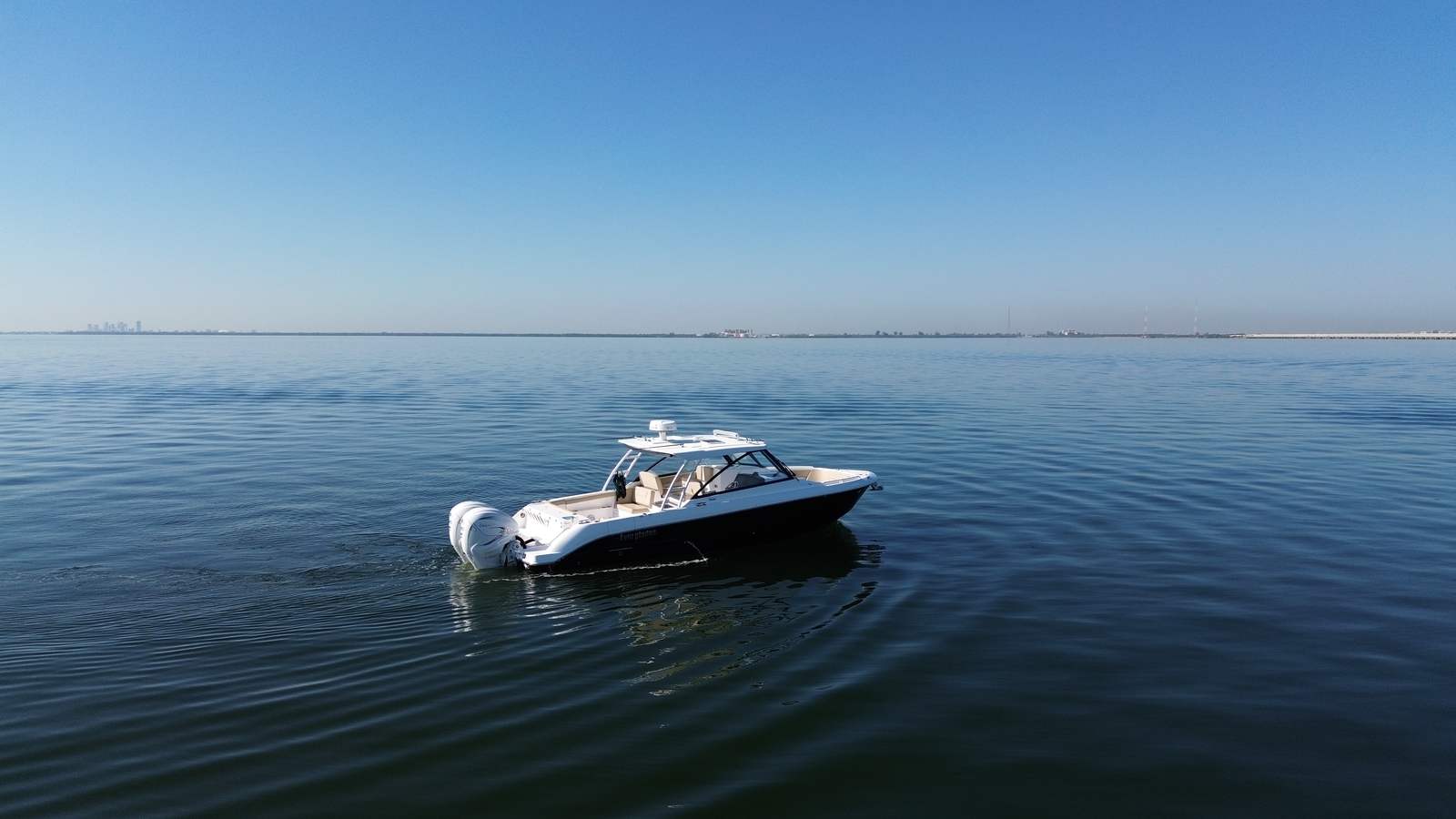 •Fiberglass hardtop with powder-coated aft legs, includes LED lights, spreader lights, radio box and speakers