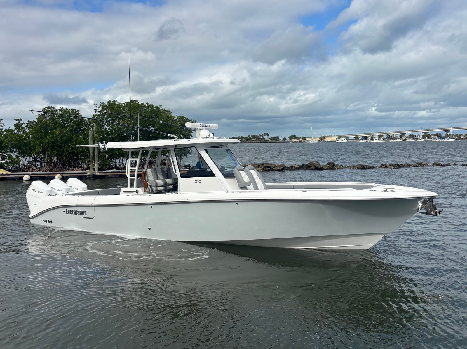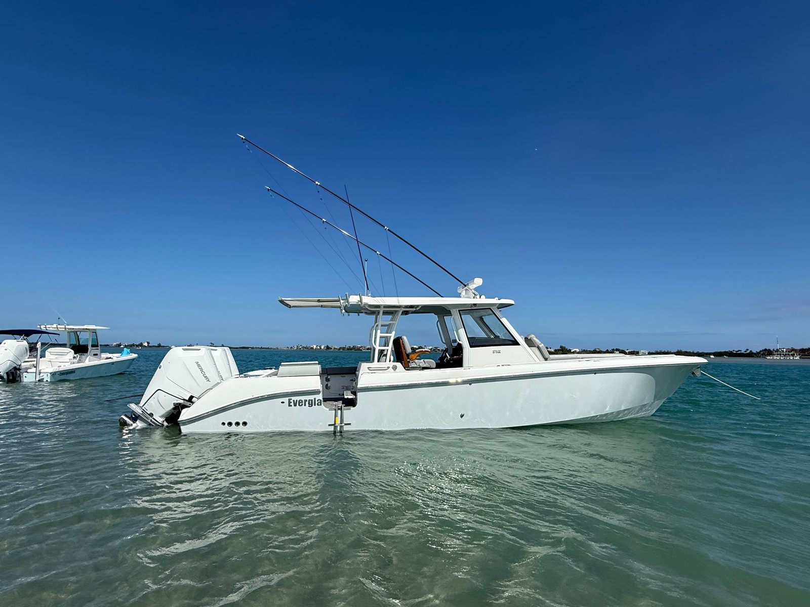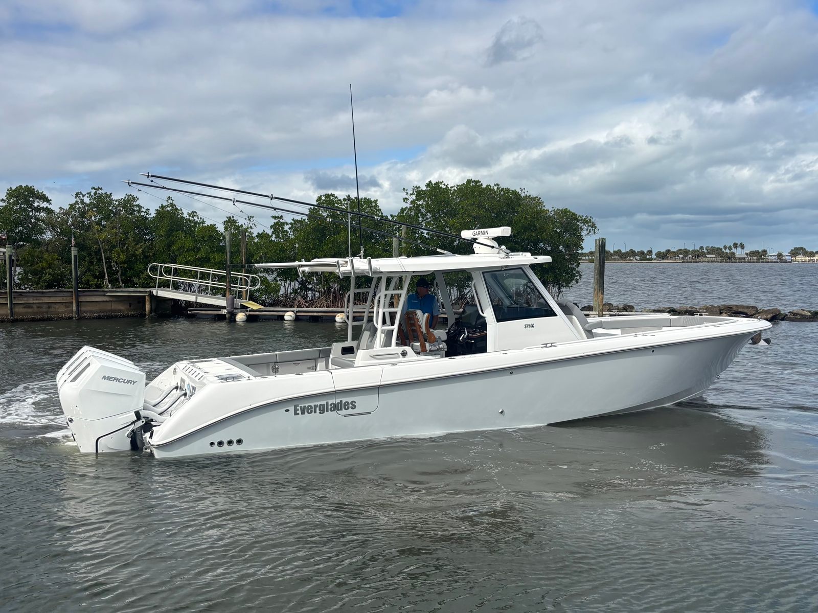 Triple Mercury 400 V10 | (78) Current Hours | Everglades (3) Year Components Warranty Expires July, 2028 | Mercury Engine Extended Warranties Expire June, 2032 | Hull Color - Whisper Gray | Interior Color - Flint Gray | Teak Trim Package | Release Marine | Teak Ladder Back Helm Seats | Dual Garmin 9222 Chart Plotters | Garmin Fantom 4' Open Array Radar | Garmin 315 VHF | AIS 800 Receiver | GXM 54 Sirius Weather Receiver | B175 High & Low Transducers | Sionyx Night Vision Camera | Canvas Package - Silver Color | Carbon Fiber Steering Wheel | Engine Flush System | DC Powered Cabin & Helm AC | DC Powered Chiller Plate - Mezzanine Box | JL Speakers M6 LED | Triple Lower Profile Light Bars | Retractable Makefast Awning | Seakeeper 3 Stabilizer | Upgraded Zip Wake PRO 400 E Series | Under Gunnel (4) Electric Reel Power Ports | Underwater LED Lights | SeaDek Flooring | (2) Gemlux Lockable Swival Rod Holders | Gemulx Carbon Fiber 18' Outriggers| SALES CONTACT - CHRIS FRAMBES 772.528.0840