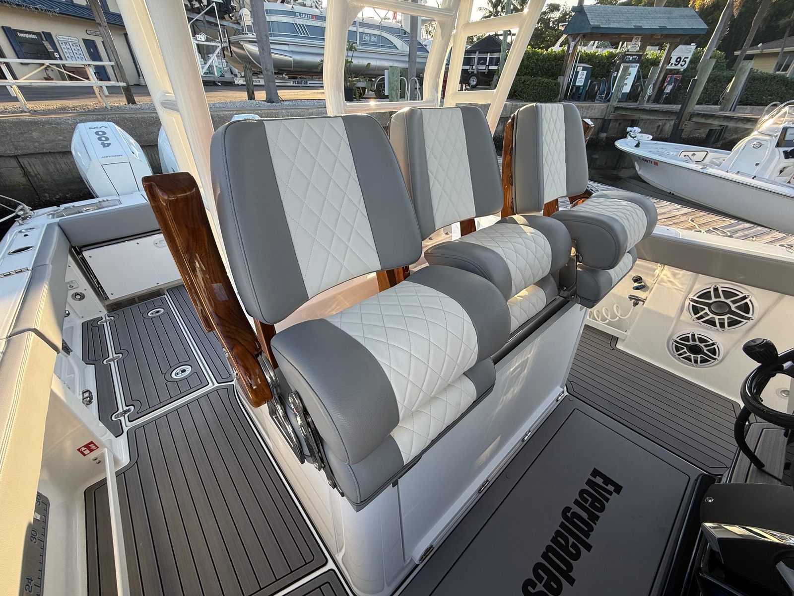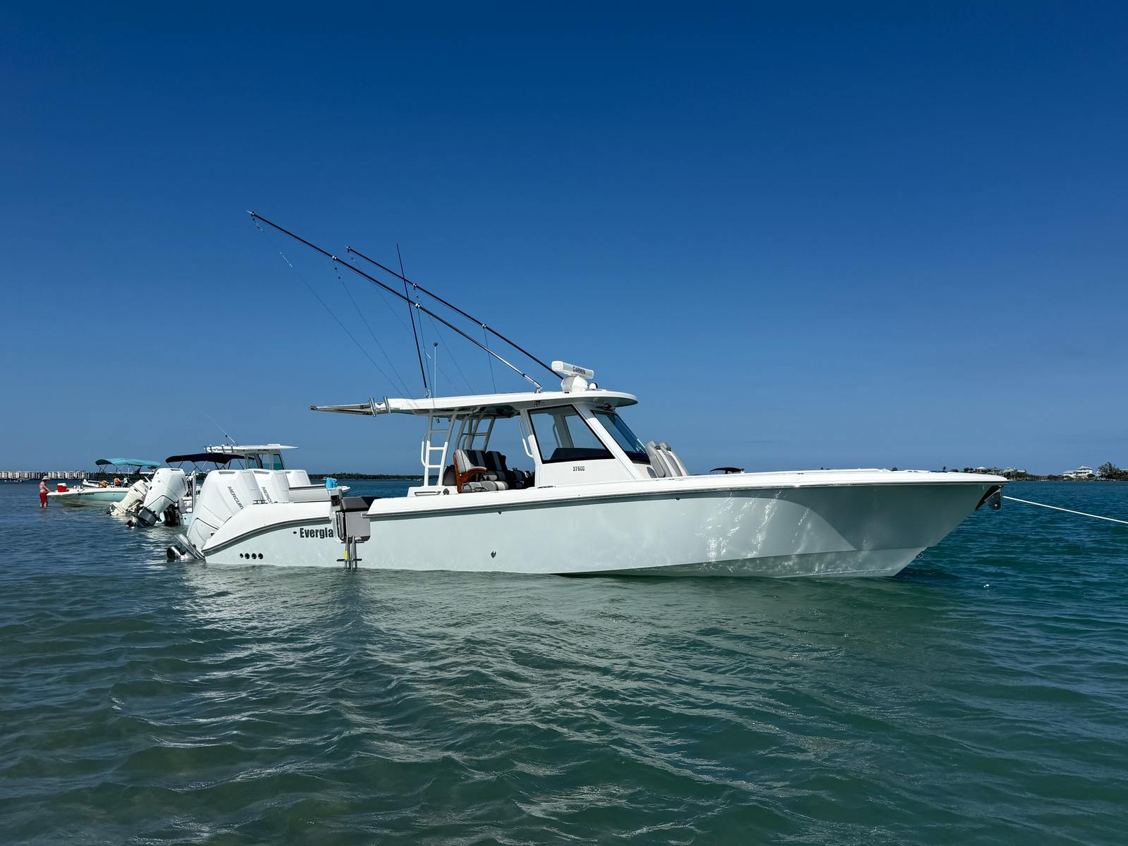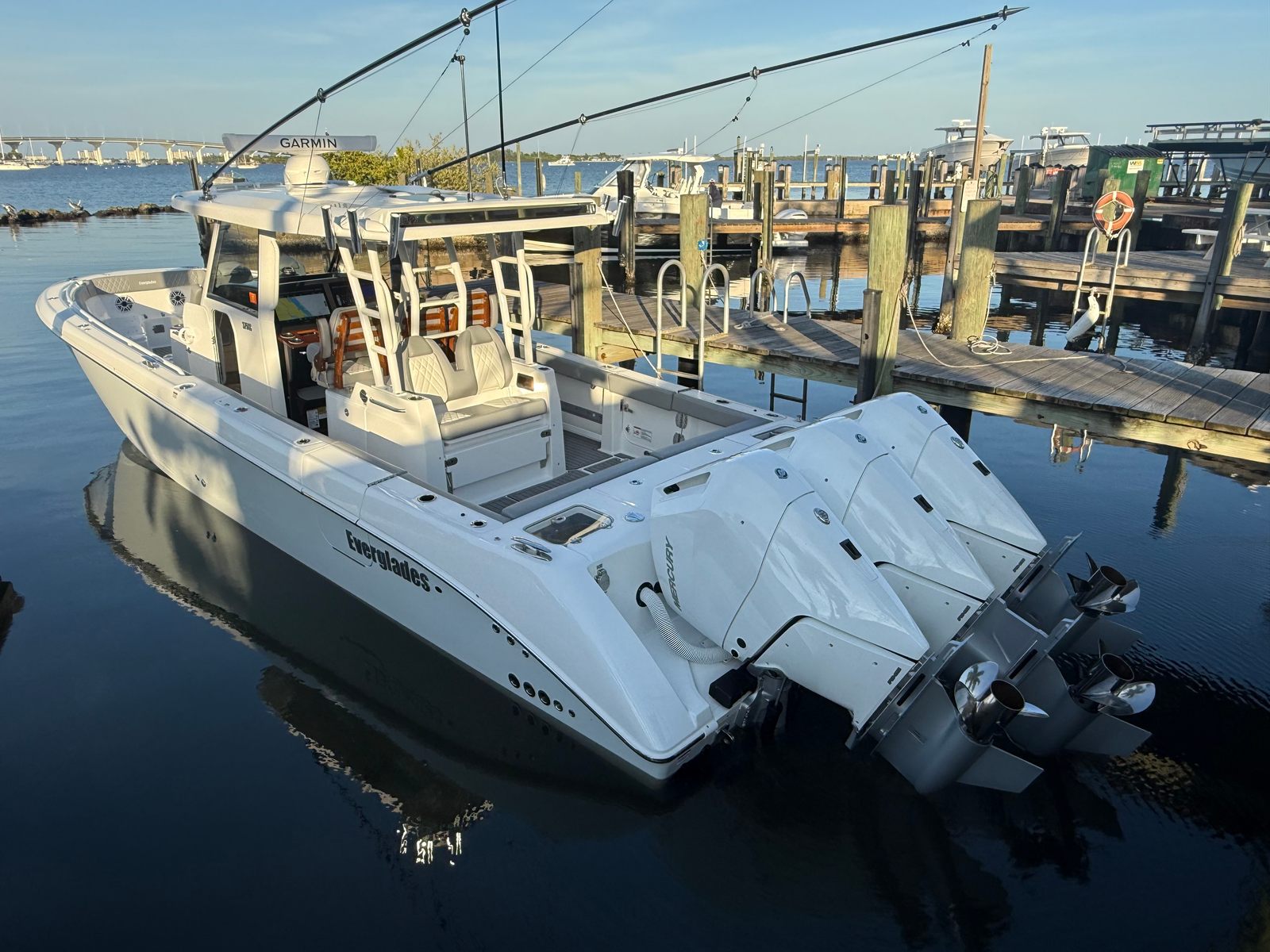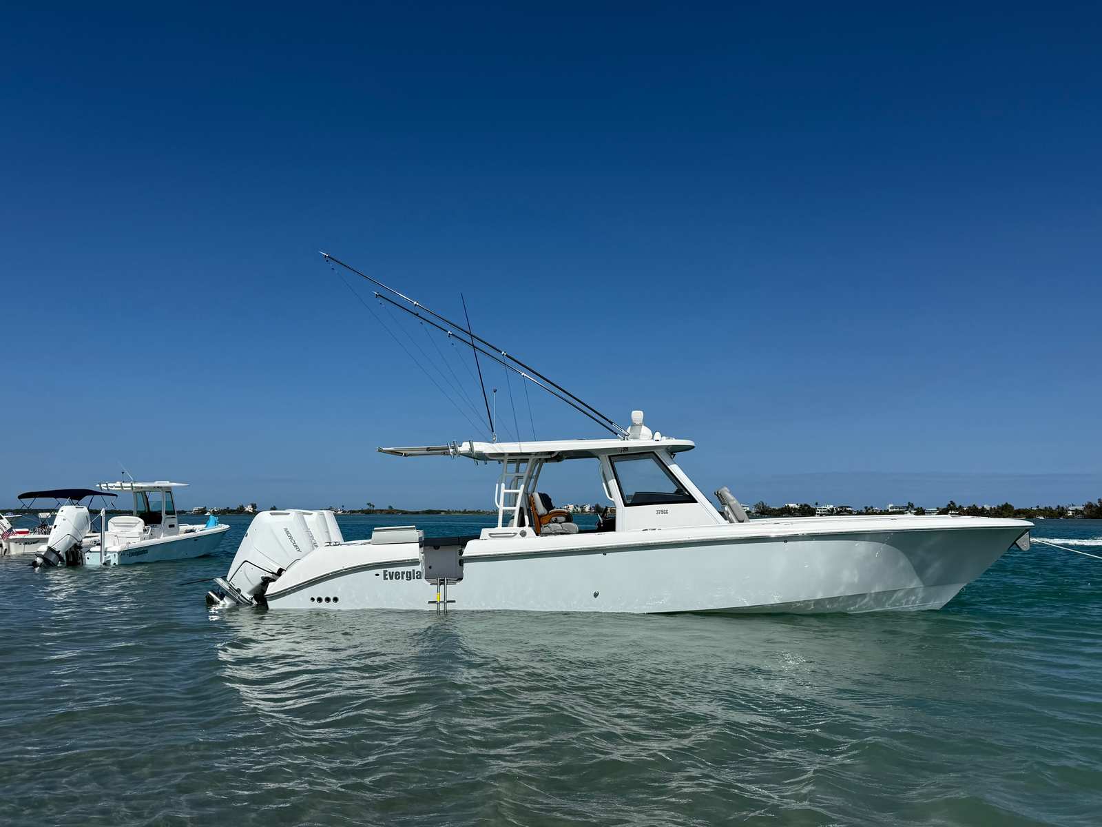 Triple Mercury 400 V10 | (78) Current Hours | Everglades (3) Year Components Warranty Expires July, 2028 | Mercury Engine Extended Warranties Expire June, 2032 | Hull Color - Whisper Gray | Interior Color - Flint Gray | Teak Trim Package | Release Marine | Teak Ladder Back Helm Seats | Dual Garmin 9222 Chart Plotters | Garmin Fantom 4' Open Array Radar | Garmin 315 VHF | AIS 800 Receiver | GXM 54 Sirius Weather Receiver | B175 High & Low Transducers | Sionyx Night Vision Camera | Canvas Package - Silver Color | Carbon Fiber Steering Wheel | Engine Flush System | DC Powered Cabin & Helm AC | DC Powered Chiller Plate - Mezzanine Box | JL Speakers M6 LED | Triple Lower Profile Light Bars | Retractable Makefast Awning | Seakeeper 3 Stabilizer | Upgraded Zip Wake PRO 400 E Series | Under Gunnel (4) Electric Reel Power Ports | Underwater LED Lights | SeaDek Flooring | (2) Gemlux Lockable Swival Rod Holders | Gemulx Carbon Fiber 18' Outriggers| SALES CONTACT - CHRIS FRAMBES 772.528.0840