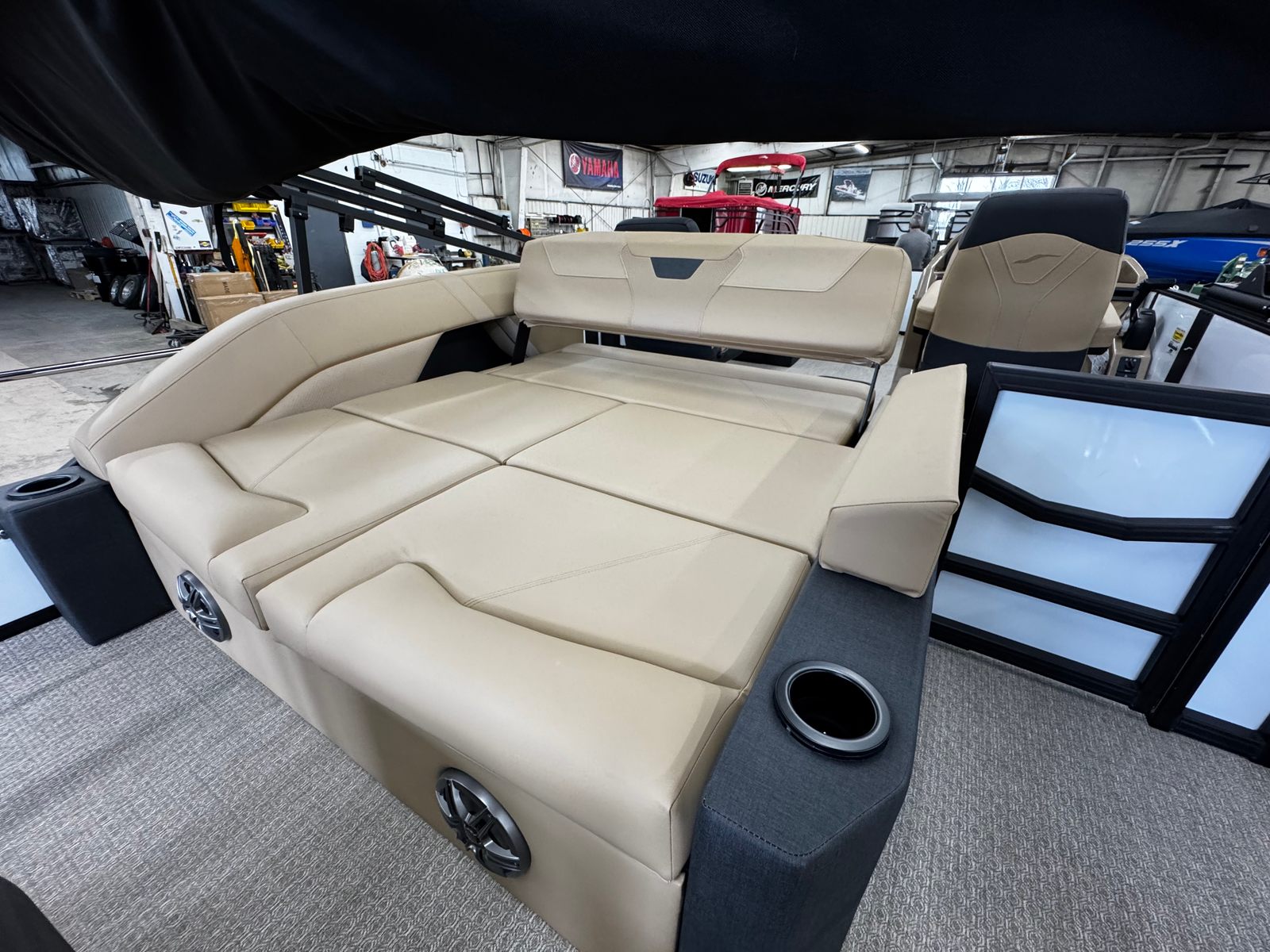 Powering the Evotti 521 CS is a robust 150-horsepower engine, ensuring smooth and reliable performance for all your aquatic adventures. The new engine offers impressive acceleration and responsive handling, making it easy to navigate lakes, rivers, and coastal waters. Whether you’re cruising at a leisurely pace or picking up speed for some excitement, this pontoon boat provides the perfect balance of power and efficiency. The advanced engine technology also contributes to a quieter ride, allowing you to enjoy conversations and the sounds of nature without unnecessary noise.