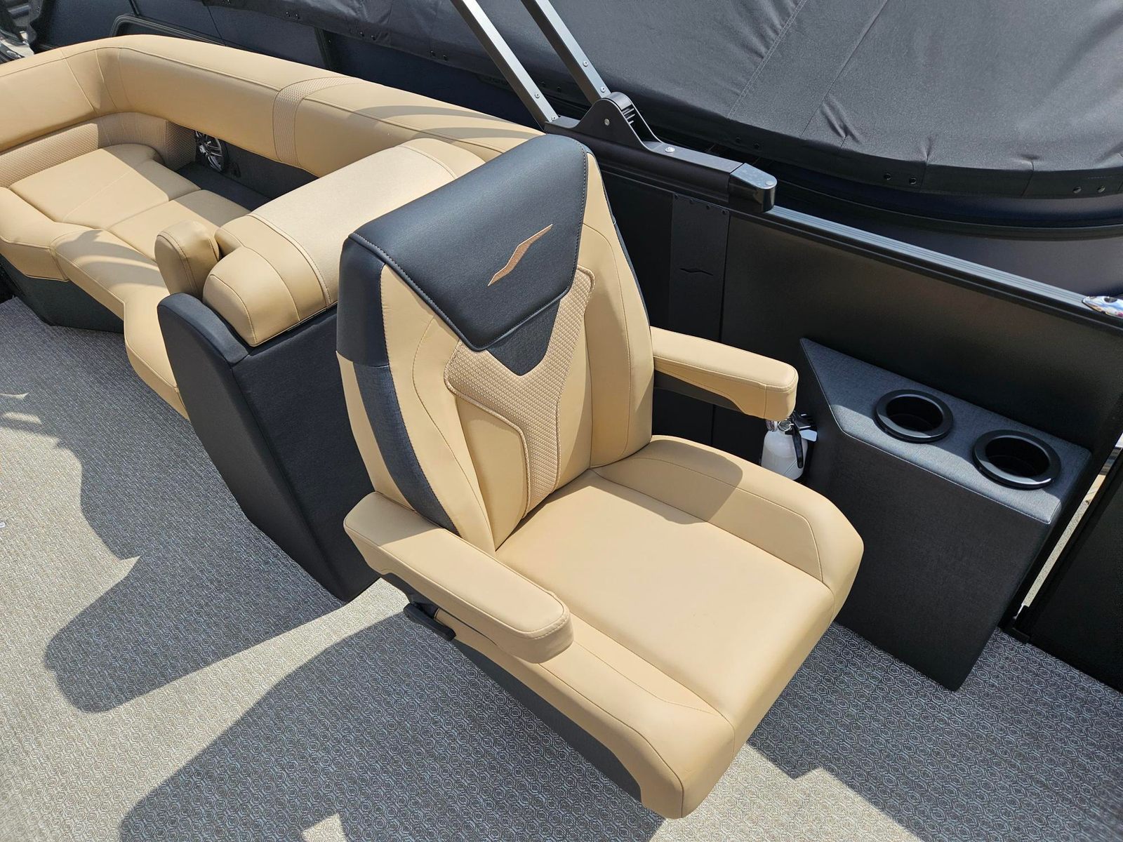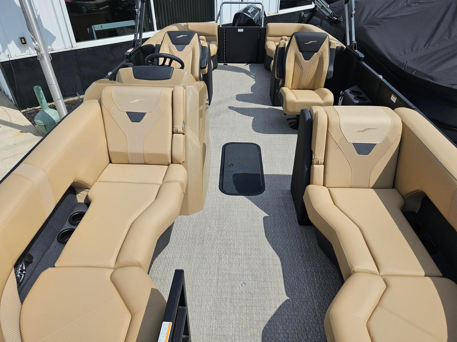 The Evotti 523 QL is loaded with premium features designed to elevate your boating experience. The Garmin 5" Echo Map with 5" gauges provides intuitive navigation and real-time data, keeping you informed and in control. The Clarion Head Unit & Speakers deliver crystal-clear audio, setting the perfect soundtrack for your day on the water. The sophisticated Panel Diamond Black Satin and Canvas Black create a modern, upscale aesthetic, while the Base Vinyl Roan Bronze and Roan Bronze Evolution Flooring offer both comfort and durability underfoot. Every detail is thoughtfully crafted to enhance your time on board, from the stylish accents to the practical layout.