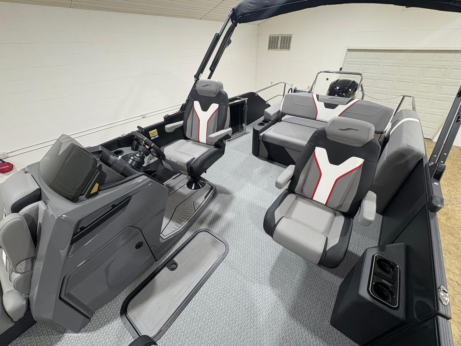 At the heart of the Evotti 723 CS is a powerful 250-horsepower engine, delivering impressive speed and agility for a pontoon boat. The Yamaha VF200XB, paired with Prerig Yamaha Mechanical - 700 Series, ensures smooth and reliable operation, whether you’re cruising across the lake or navigating tight marina spaces. The Single Engine Rigging & Prop system is engineered for efficiency and ease of use, making this Evotti boat for sale a pleasure to drive. With power assist steering, you’ll experience effortless control and responsive handling, allowing you to focus on enjoying your time on the water.