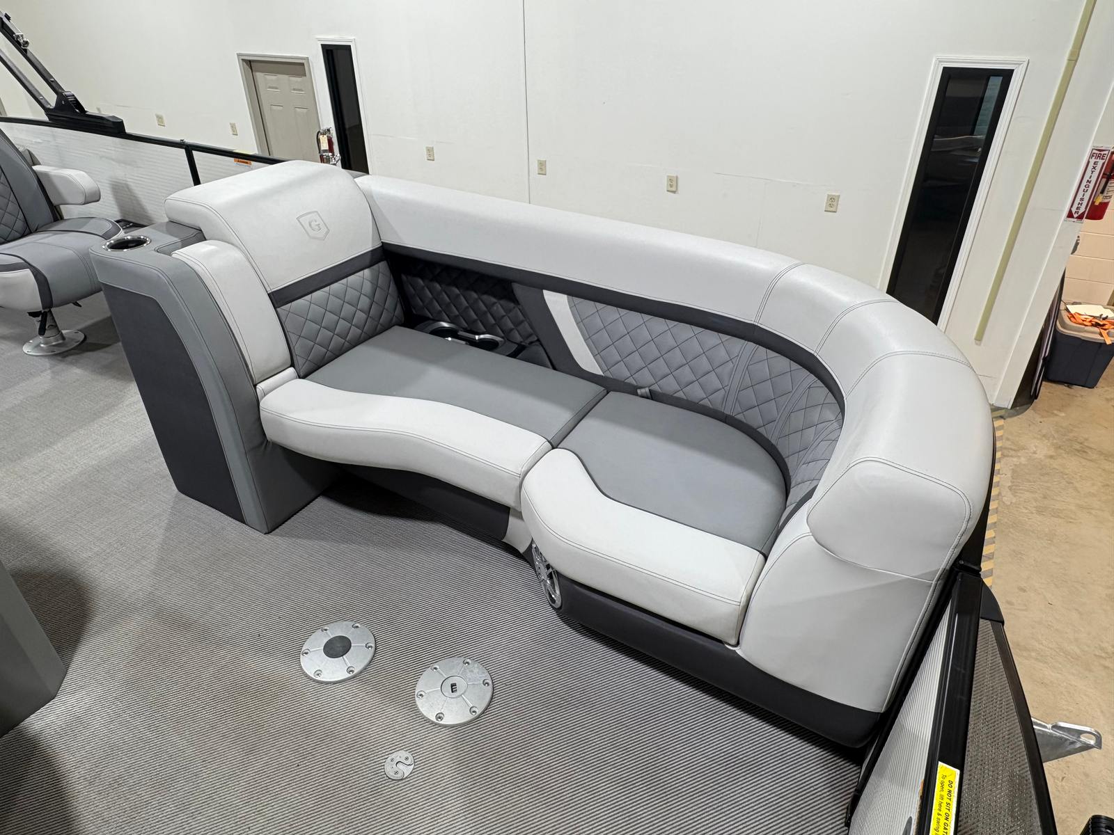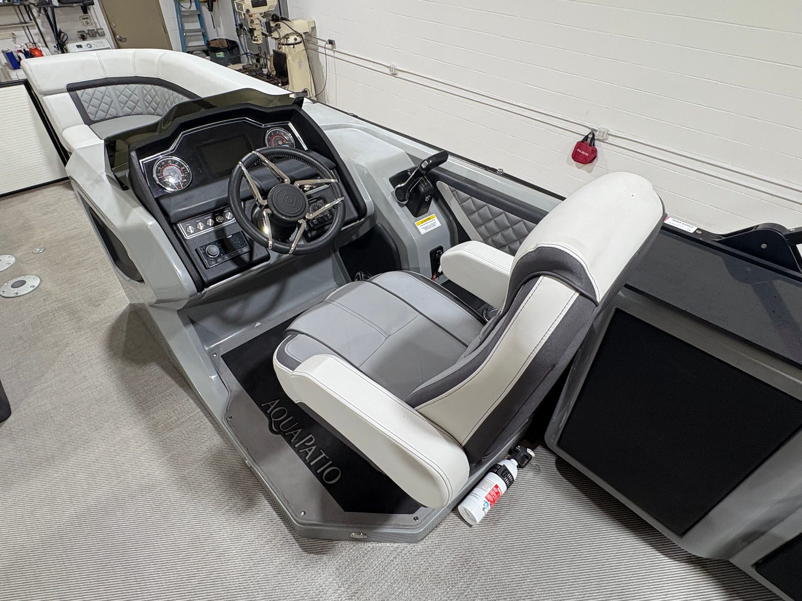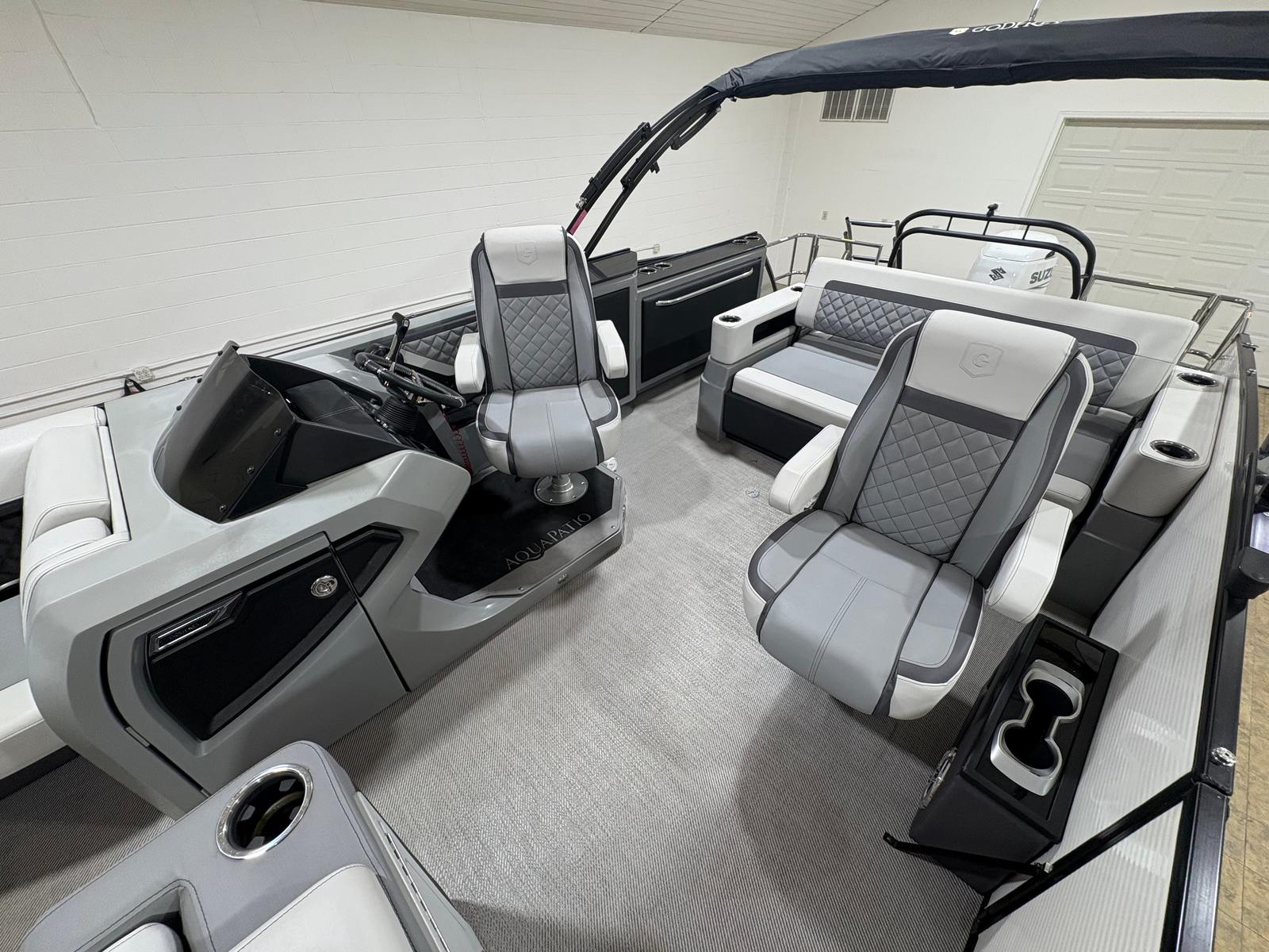 The Godfrey Aqua Patio 235 Sflc comes equipped with a host of special features that set it apart from other pontoon boats for sale. Enjoy the convenience of a FULL MOORING COVER, which helps protect your investment and keeps your boat looking pristine. The POWER BIMINI TOP offers effortless shade and shelter, allowing you to relax in comfort no matter the weather. The TRANSOM RAIL SYSTEM adds safety and versatility, while DOCKING LIGHTS make evening arrivals and departures a breeze.For those who love water activities, the FOLDING SWIM LADDER and SKI TOW BAR make it easy to dive in or enjoy exhilarating water sports. The UNDERWATER LIGHTS and RGB UNDERDECK LIGHTS create a captivating ambiance for nighttime cruises, while the RGB INTERIOR LIGHTING lets you set the mood for any occasion. The stainless steel prop not only boosts performance but also adds a touch of sophistication to the boat’s overall design.