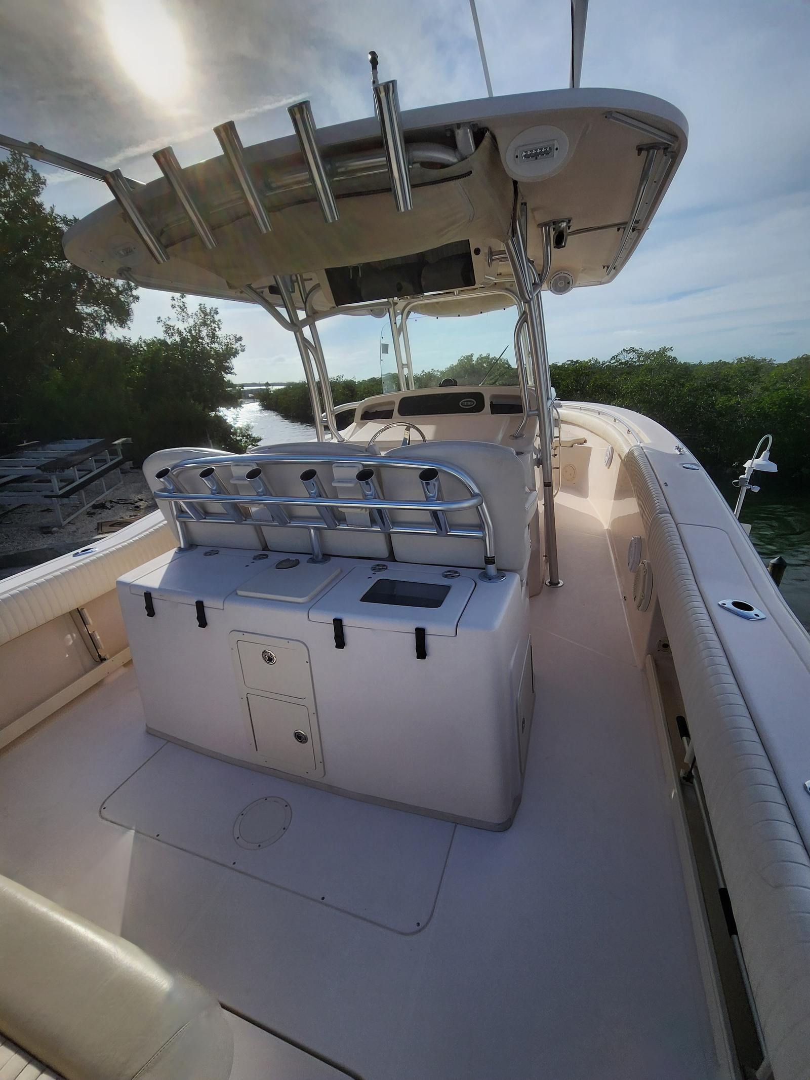 Powering the Grady-White Canyon 336 are two high-performance engines, delivering a combined 700 horsepower. With only 112 engine hours, these engines promise plenty of life and reliability for future adventures. The dual-engine setup ensures smooth acceleration, impressive top speeds, and excellent maneuverability, making this Center Console boat for sale a joy to operate in a variety of conditions. Whether you’re cruising along the coastline or heading offshore for a day of fishing, the Canyon 336’s powerful engines provide the confidence and capability you need to tackle any journey. The responsive handling and robust horsepower make it easy to navigate busy marinas, open waters, and everything in between.