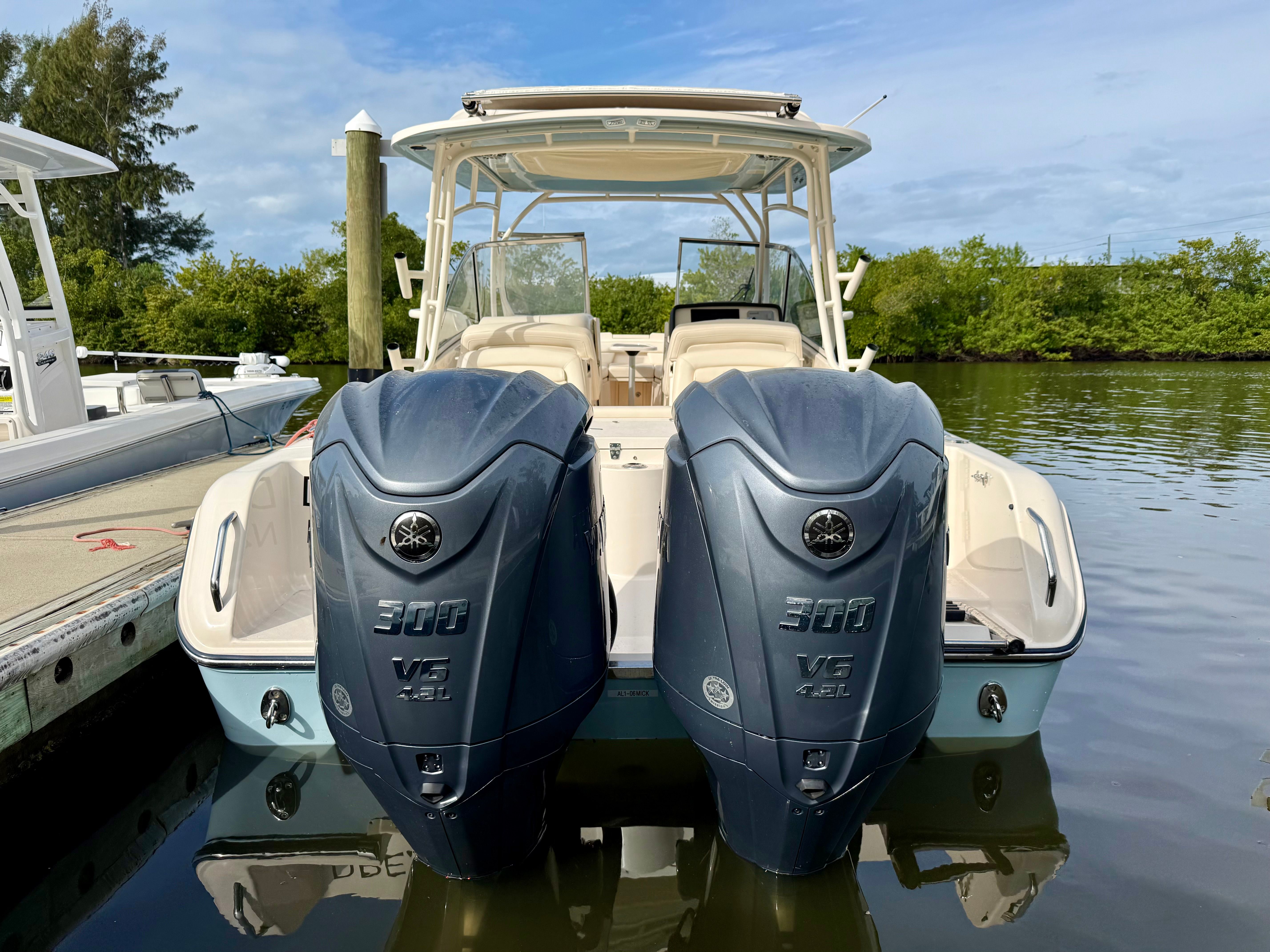Consigned from a local customer, this exceptionally well-maintained 2024 Grady-White Boats 285 Freedom is turnkey and ready for her next adventure on the water. Known for Grady-White’s legendary SeaV²® hull design, this dual-console delivers a smooth, confident ride in a wide range of conditions while maintaining excellent stability at rest. She is powered by twin Yamaha 300HP outboards with just 86 original hours, offering impressive performance, reliability, and fuel efficiency whether you’re cruising the coastline, island hopping, or heading offshore for a day of fishing.