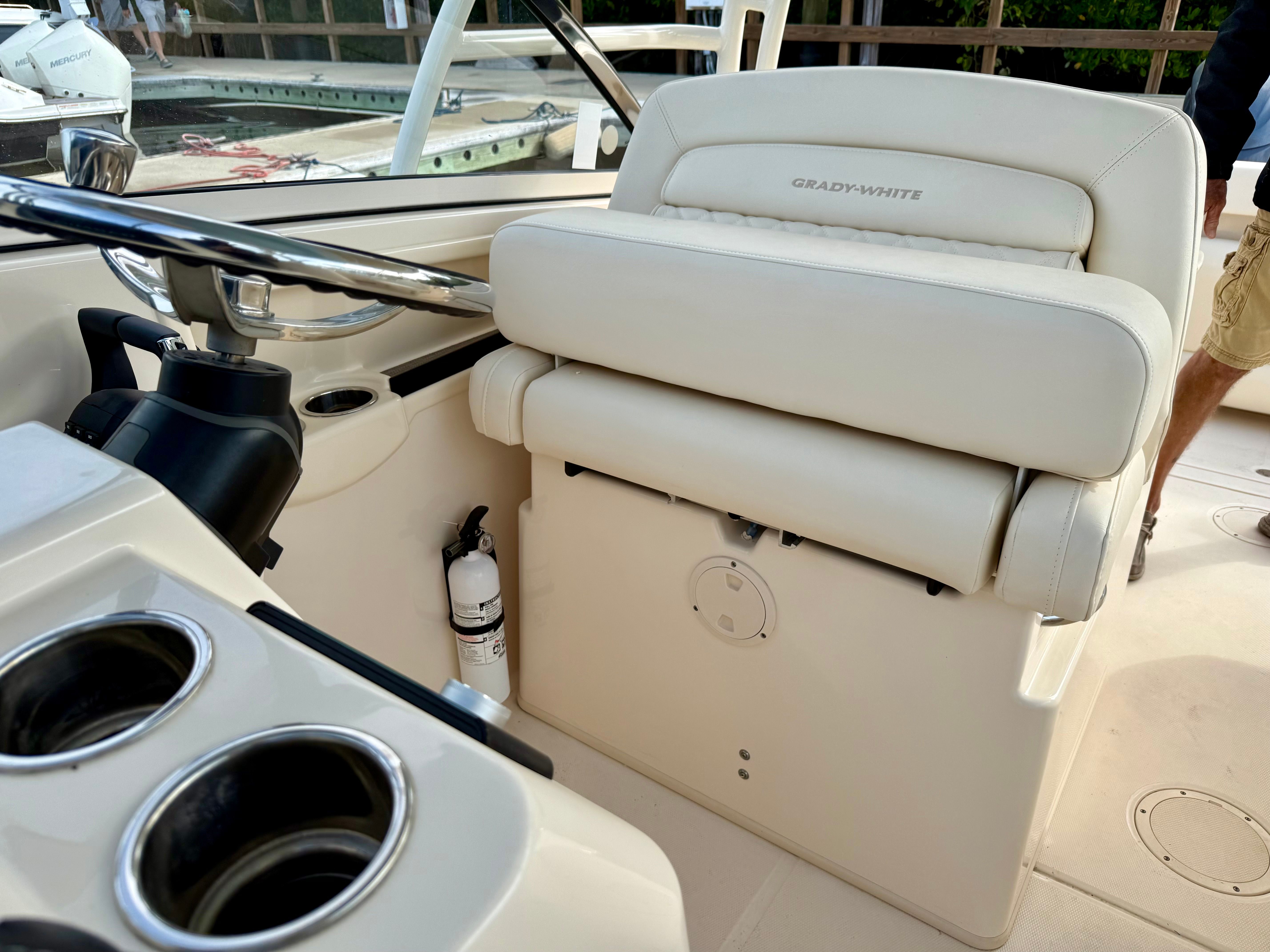 Additional highlights include a livewell for anglers, underwater lights for evening ambiance at the dock or on the hook, and spacious seating from bow to stern that makes this model ideal for family outings and entertaining guests. Grady-White’s renowned build quality, attention to detail, and intelligent storage solutions are evident throughout, providing both luxury and practicality in one versatile platform.