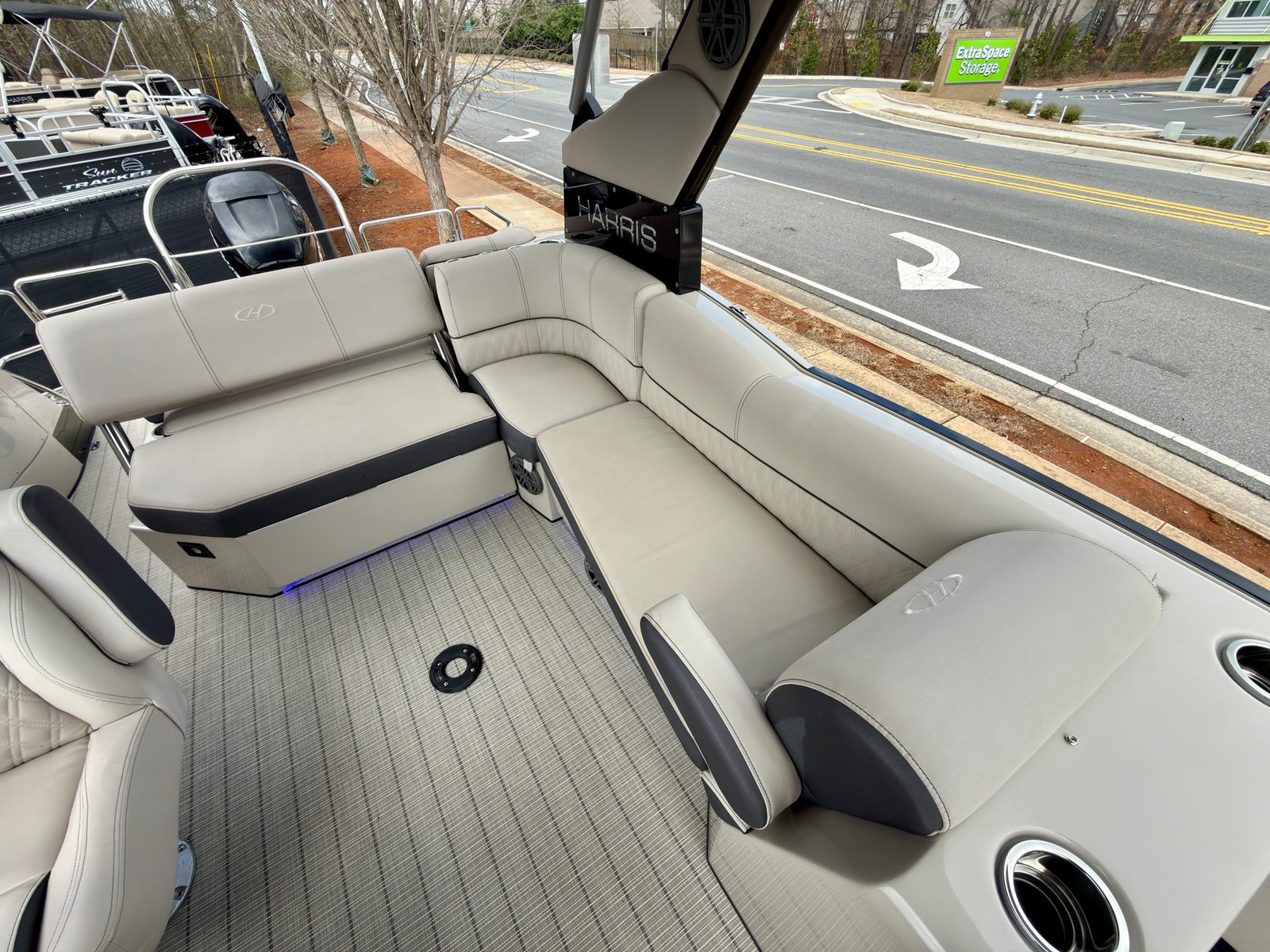 Practicality is at the core of the Harris Crowne 250’s appeal. The 25-foot length strikes the perfect balance between spaciousness and maneuverability, making docking and storage straightforward even for less experienced boaters. The efficient single-engine setup not only delivers impressive power but also helps keep fuel consumption in check, making your outings more economical and environmentally friendly.Storage is another highlight of this pontoon boat for sale. Thoughtfully placed compartments and under-seat storage areas provide ample space for gear, water toys, and personal items, keeping the deck clutter-free and organized. The intuitive helm layout ensures that all controls are easily accessible, enhancing safety and ease of operation. Whether you are docking at a busy marina or anchoring in a quiet cove, the Crowne 250’s design makes every aspect of boat ownership more enjoyable.