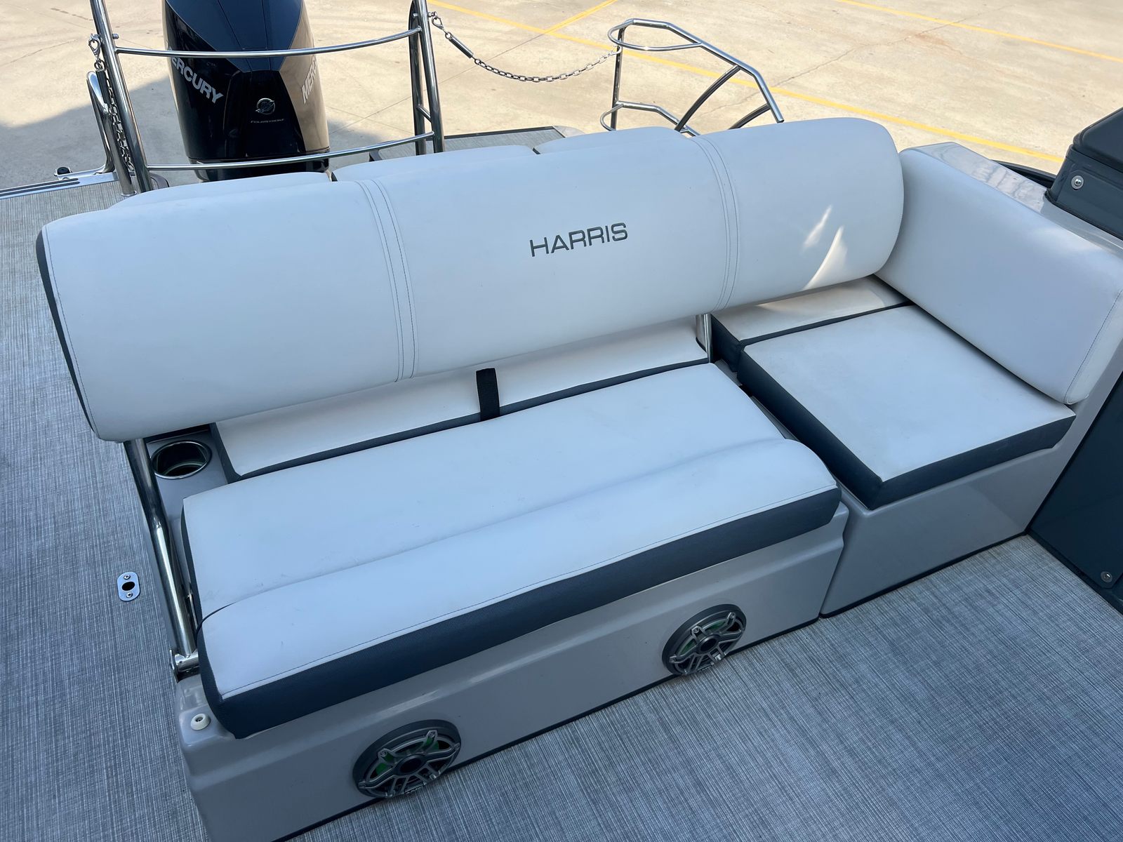 The 2022 Harris Grand Mariner 230 comes equipped with a range of features designed to enhance your time on the water. Its spacious deck layout provides plenty of room for guests to move about comfortably, while the plush seating invites you to sit back and unwind. The pontoon’s thoughtful design ensures that every inch of space is utilized efficiently, making it ideal for socializing, sunbathing, or enjoying a meal with loved ones. The high-quality construction and attention to detail are evident throughout, from the durable flooring to the stylish railings and fixtures. With its generous length and well-planned layout, this Harris boat for sale offers both functionality and elegance.
