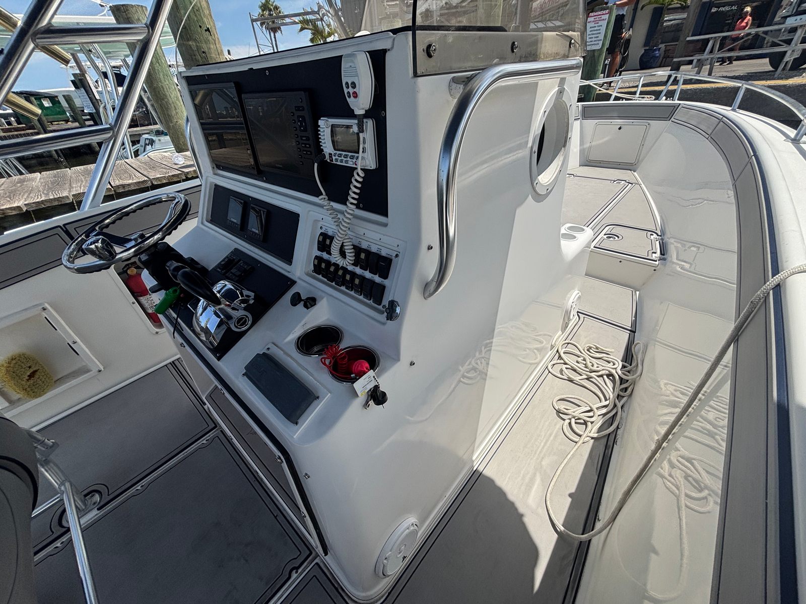 Powering the Jefferson Marlago FS31 are two engines, delivering a combined 400 horsepower. With only 150 engine hours, these motors have plenty of life left, ensuring you can enjoy countless adventures without worry. The dual-engine setup provides excellent acceleration, responsive handling, and the ability to tackle a variety of water conditions with confidence. Whether you’re cruising along the coastline, heading out for a day of fishing, or exploring new destinations, the Marlago FS31’s performance capabilities make every outing smooth and enjoyable. The center console design further enhances visibility and control, allowing you to maneuver with ease and precision.