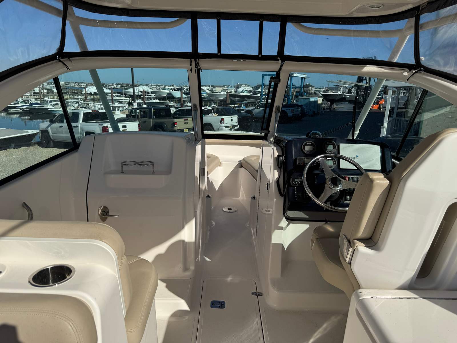 Powering the Pursuit DC 265 are two dependable engines, delivering a combined 400 horsepower for exhilarating performance and smooth handling. With dual engines, this Dual Console boat for sale offers enhanced maneuverability and stability, making it ideal for navigating coastal waters, lakes, and rivers. The engines have only 207 hours of use, ensuring plenty of life and reliability for future adventures. Whether you’re accelerating to your favorite fishing spot or cruising along the shoreline, the DC 265 provides responsive power and efficiency, allowing you to enjoy every moment on the water.