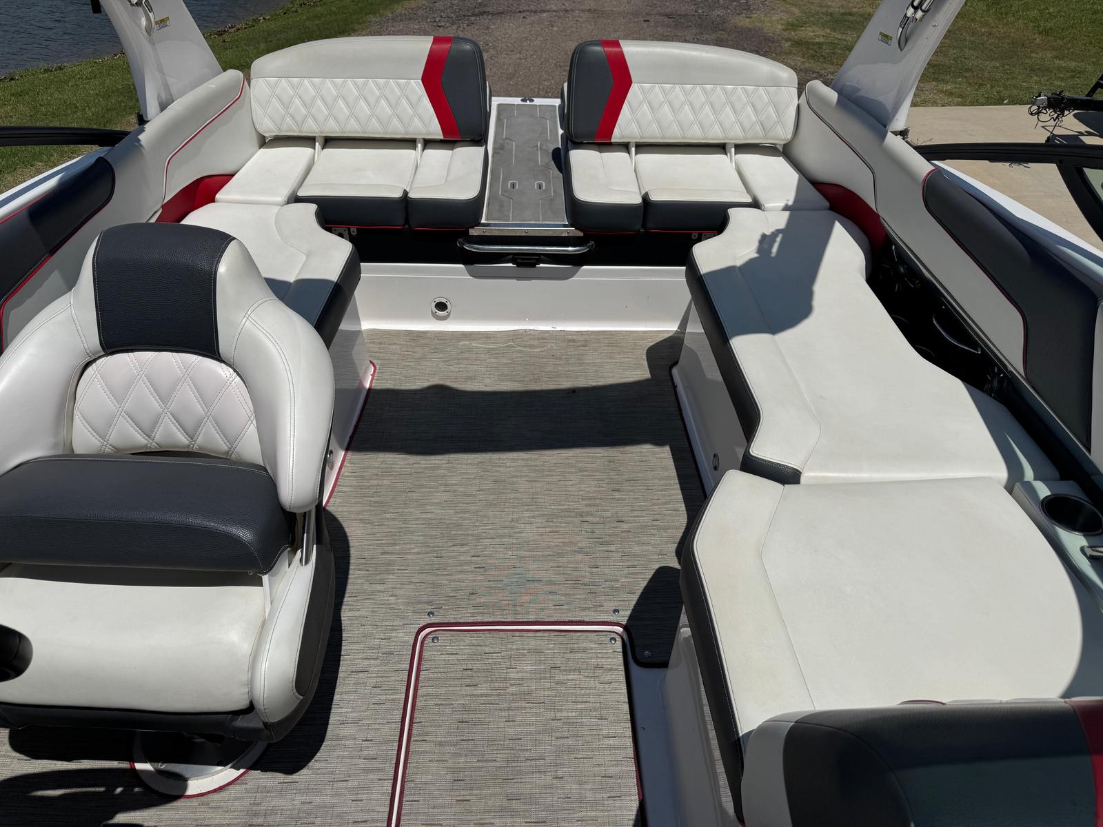 Under the hood, the Regal 2300 RX Surf is powered by a single robust engine delivering an impressive 300 horsepower. With only 135 engine hours, this used Bowrider boat for sale has plenty of life left for years of aquatic adventures. The powerful engine ensures quick acceleration, smooth cruising, and the ability to carve through waves with ease. Whether you’re towing wakeboarders, surfers, or simply enjoying a spirited ride, the 2300 RX Surf’s performance is both exhilarating and reliable. The advanced surf system enhances wave creation, making it a top choice for water sports enthusiasts who want to master their skills or introduce friends and family to the thrill of surfing behind the boat.