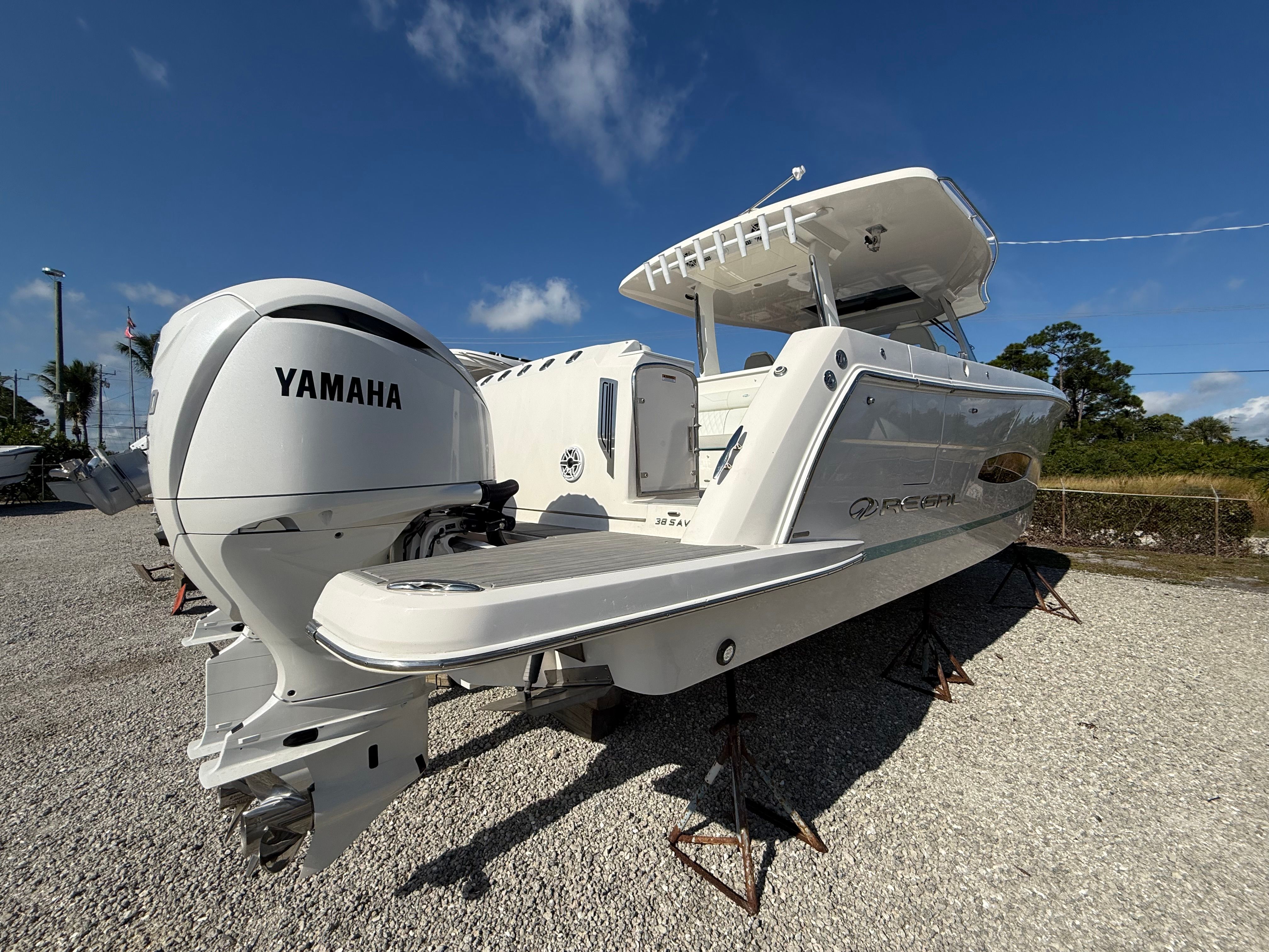 ** NEW TO THE MARKET ** 2021 REGAL 38 SAV | REPOWERED WITH 2025 TRIPLE YAMAHA 300 V6 | (5) CURRENT HOURS - YAMAHA WARRANTIES START AT TIME OF PURCHASE | OPTIMUS 360 JOYSTICK CONTROLS | GARMIN AUTO PILOT | DUAL GARMIN 8616XSV PLOTTERS | B60 TRANSDUCERS | GARMIN 4' OPEN ARRAY RADAR | GARMIN 110 VHF | NEW FISHER-PANDA DIESEL GENERATOR (INSTALLED DECEMBER, 2025 WITH 5 YEAR WARRANTY) | NEW SEAKEEPER 3 STABILIZER (INSTALLED DECEMBER, 2025 WITH 2 YEAR WARRANTY) | HULLSIDE - WHITE | BOOTSTRIPE - BIMINI BLUE | INTERIOR - TITANIUM WITH BIMINI BLUE ACCENTS | COUNTERTOPS - STRATO WIND | KVH SATELLITE TV | MID CABIN TV | COCKPIT TV | SEADEK COCKPIT SOLE | COCKPIT REFRIGERATOR | ROCKET LAUNCHER | OUTRIGGERS | FENDER CLIPS | DEEP DROP OUTLETS | FISH PACKAGE | TOILET - OVERBOARD DISCHARGE | BOW & COCKPIT COVERS | MANUAL BOW & COCKPIT SUNSHADE SYSTEM | WINDLASS ANCHOR | SALES CONTACT - CHRIS FRAMBES 772.528.0840
