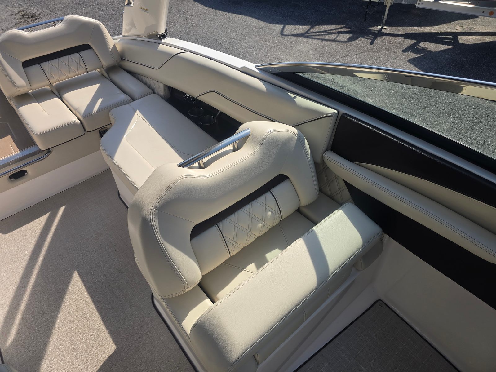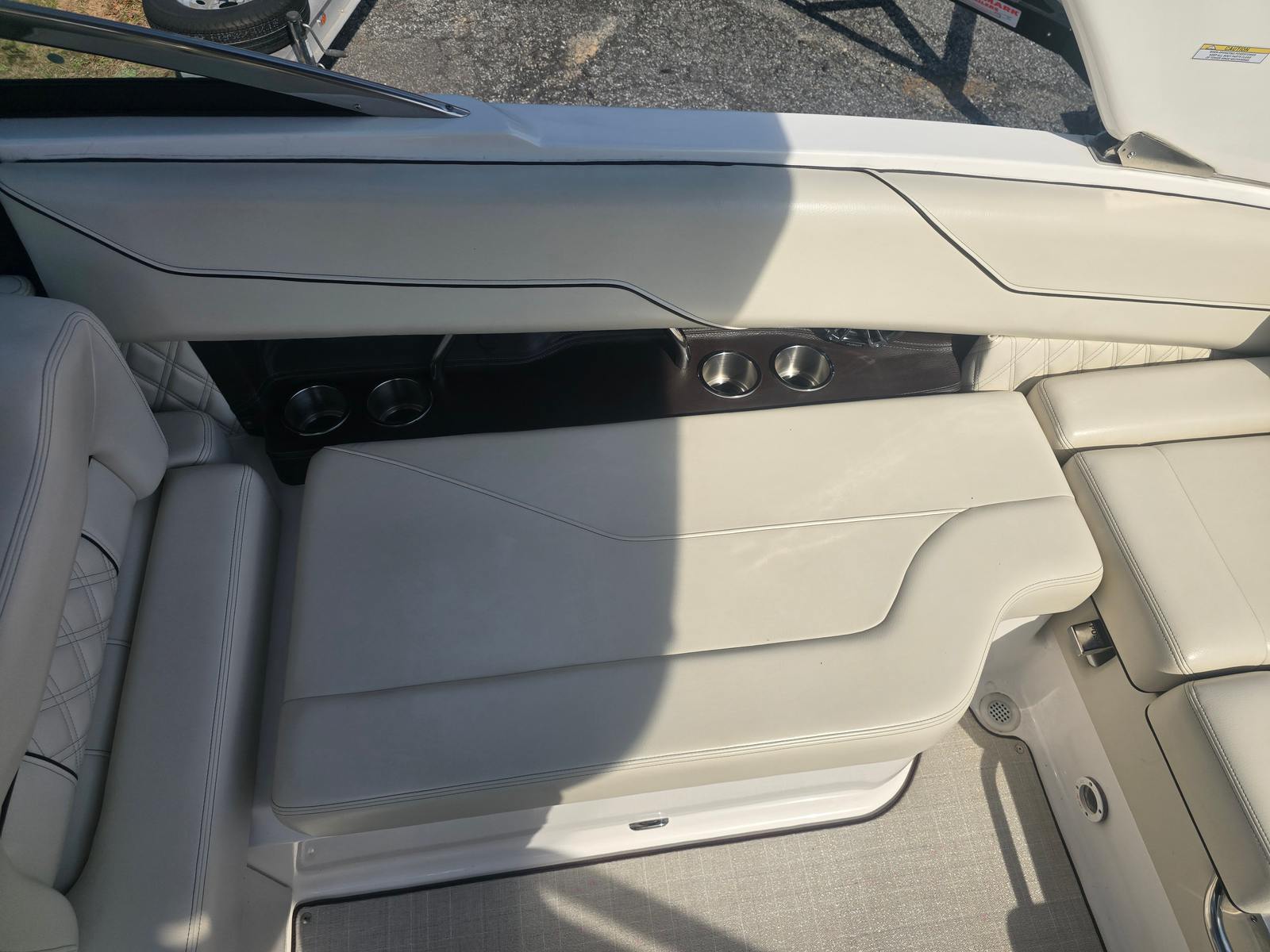 The Regal LS4 Bowrider is packed with features designed to enhance comfort, convenience, and enjoyment. The travel storage cover in black protects your investment when not in use, while the Mediterranean Blue canvas offers shade and style during sunny days. Step onto the SeaDek swim platform for a soft, slip-resistant surface that makes swimming and water sports safer and more enjoyable. The cockpit seagrass mat adds a touch of luxury underfoot, creating a welcoming space for lounging and socializing. With the dual battery switch and tray, you’ll have peace of mind knowing your boat is equipped for extended outings and reliable starts.