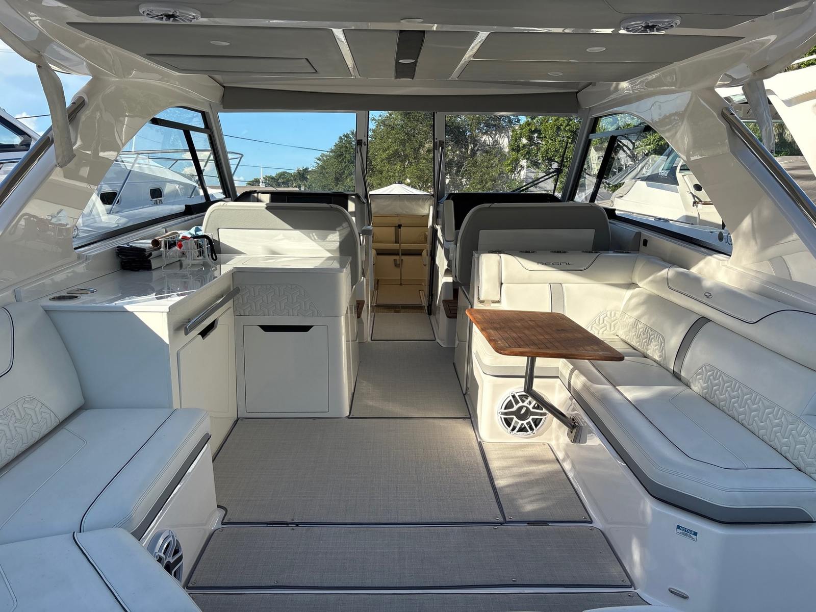 The Regal LX36 is as practical as it is luxurious. Its 27-foot length strikes the perfect balance between spaciousness and ease of handling, making docking and maneuvering a breeze even for less experienced boaters. The dual engines provide not only power but also added confidence when navigating tight spaces or challenging conditions.Storage is another highlight of the LX36, with cleverly designed compartments that keep gear, supplies, and personal items organized and out of the way. This makes it easy to bring along everything you need for a day on the water, from water toys to picnic essentials. The boat’s efficient design also contributes to fuel economy, allowing you to spend more time enjoying the water and less time refueling.