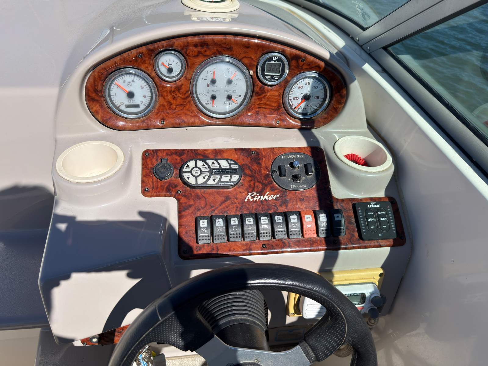 The Rinker Fiesta Vee 270 is designed with practicality in mind, making ownership both enjoyable and convenient. Its manageable length of just under 28 feet makes docking and maneuvering a breeze, even for those new to boating. The efficient single-engine setup helps keep fuel costs in check, allowing you to spend more time on the water and less time at the pump. Ample storage throughout the boat ensures you can bring along all your essentials, from water sports gear to picnic supplies. The durable construction and proven reliability of this Rinker boat for sale mean you can focus on making memories instead of worrying about maintenance.