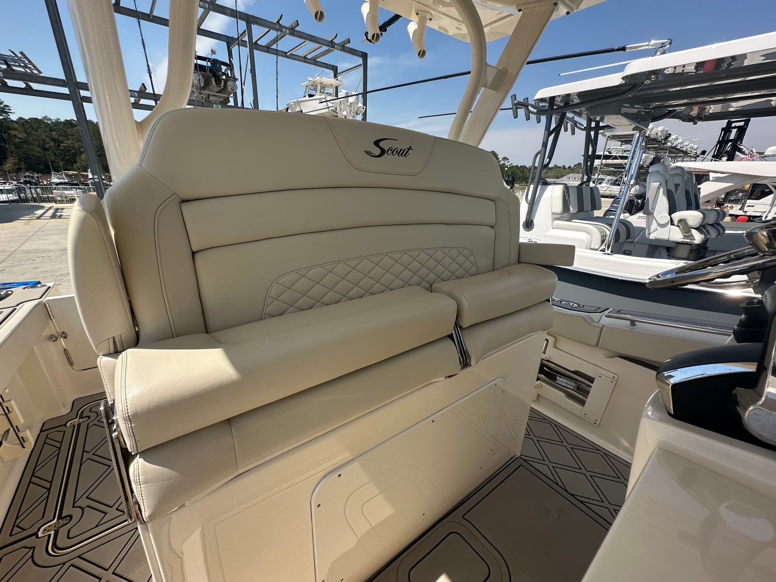 The Scout 330 LXF is designed with practicality in mind, making boat ownership easier and more enjoyable. The generous storage options allow you to bring along all the gear you need for a day on the water, from fishing equipment to water toys and picnic supplies. The center console layout provides easy access to all areas of the boat, simplifying docking and maneuvering in tight spaces.Fuel efficiency is a key consideration for any boater, and the twin-engine setup of the Scout 330 LXF is engineered to deliver impressive performance without sacrificing economy. This means you can spend more time on the water and less time at the fuel dock. The durable construction and quality materials ensure that this used Scout boat for sale will stand up to the demands of regular use, providing peace of mind for years to come.