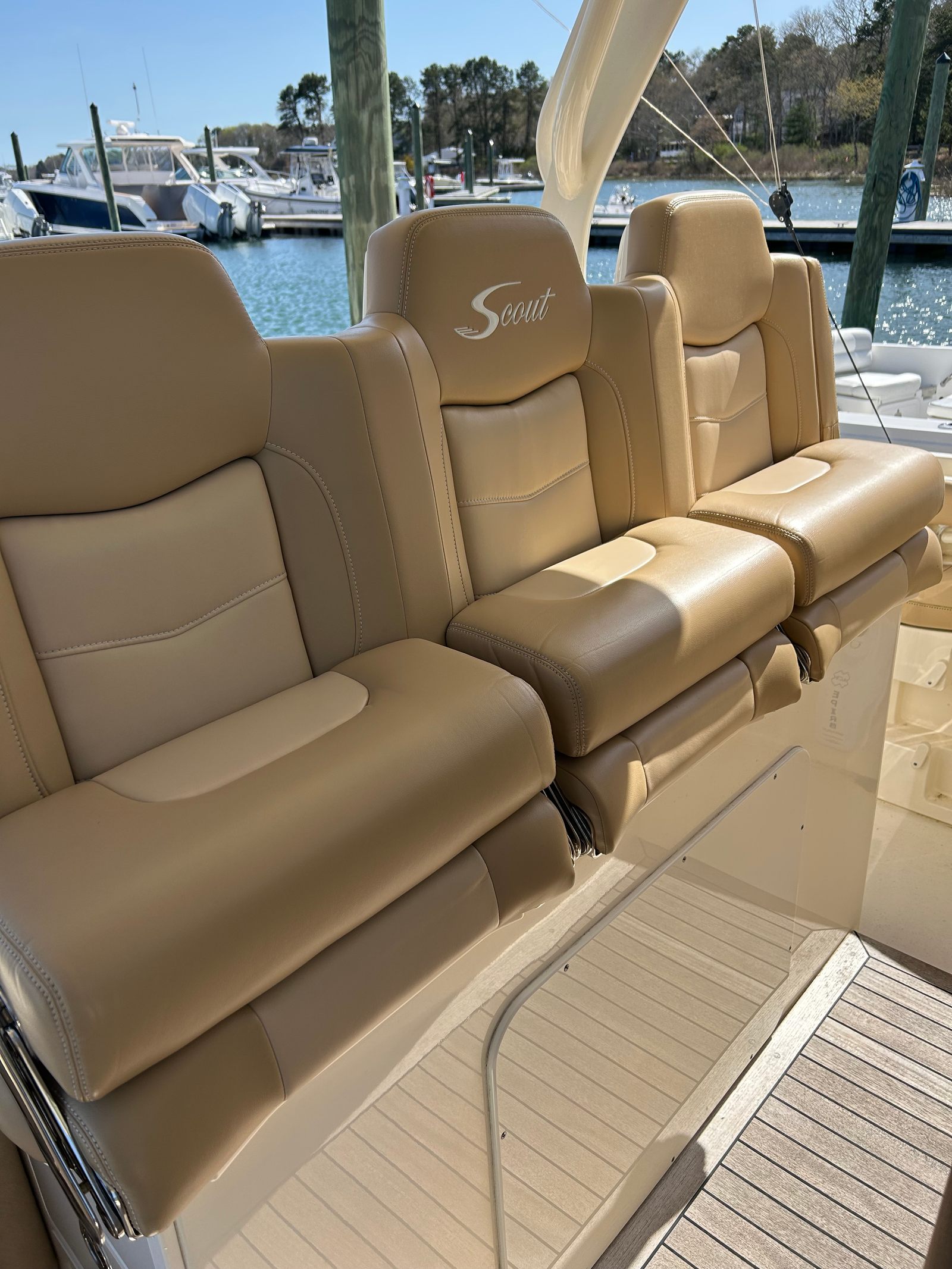 At the heart of the Scout 355 LXF are three powerful engines, delivering a combined 900 horsepower. With 479 engine hours, these motors have proven their reliability and are ready to provide many more seasons of excitement. The triple-engine setup ensures rapid acceleration, impressive top speeds, and smooth handling, making every outing a thrill. Whether you’re chasing the horizon or maneuvering through busy marinas, this Scout boat for sale offers responsive control and outstanding performance. The advanced hull design further enhances stability and efficiency, allowing you to enjoy a comfortable ride even in choppy waters.