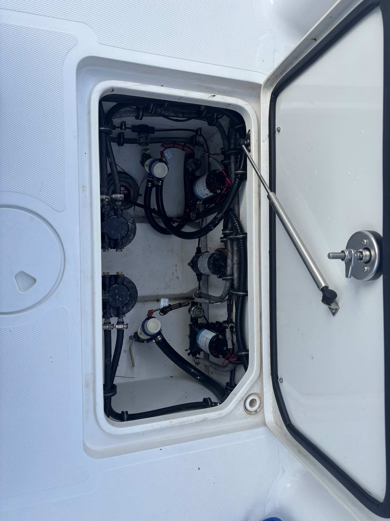 Powering this impressive vessel are twin engines, delivering a combined 600 horsepower. With only 55 engine hours, these engines provide robust and reliable performance, ensuring you have the power you need for offshore fishing, cruising, or water sports. The dual-engine setup not only enhances speed and acceleration but also offers added safety and maneuverability, making it easier to navigate a variety of water conditions. Whether you’re chasing the next big catch or enjoying a day of island hopping, the Sea Hunt 28 Gamefish CB’s performance capabilities are sure to impress.